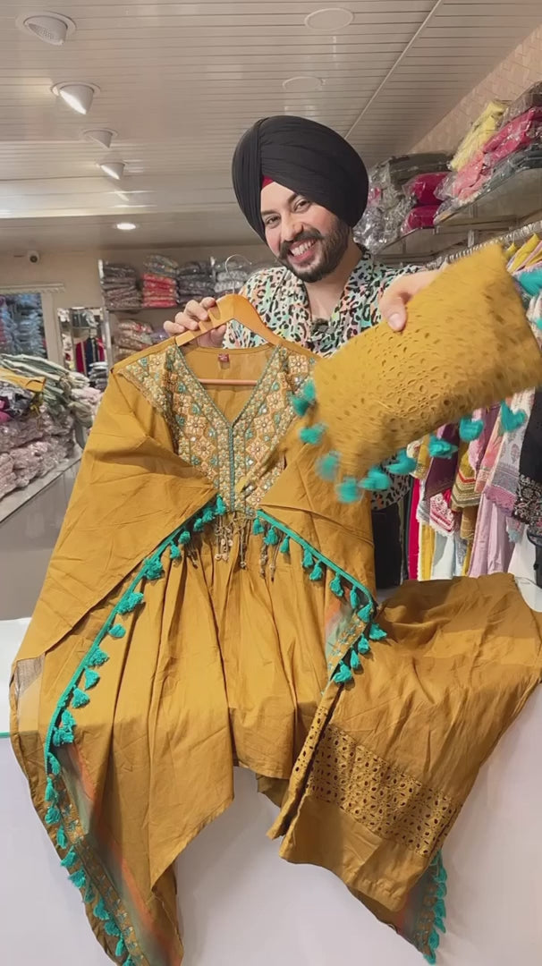 Pure Cotton Embroidered Kaftan Coord set with Purse