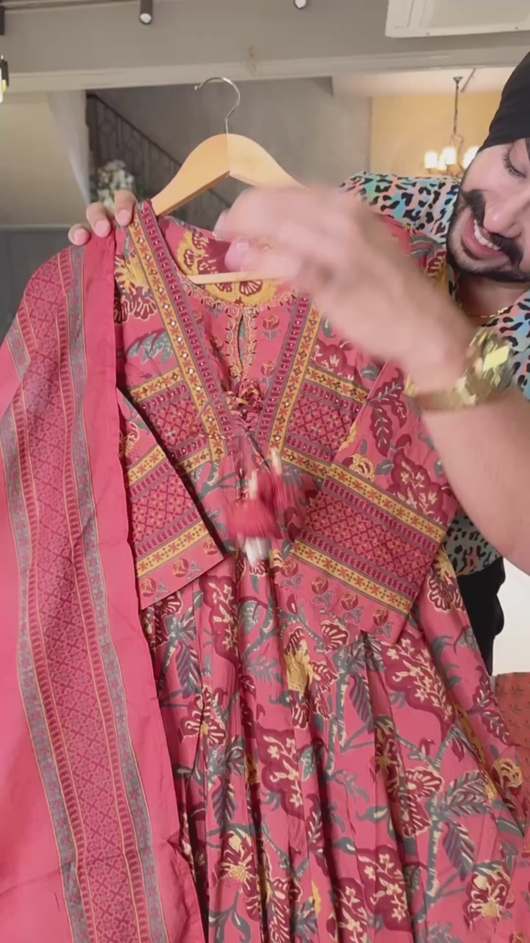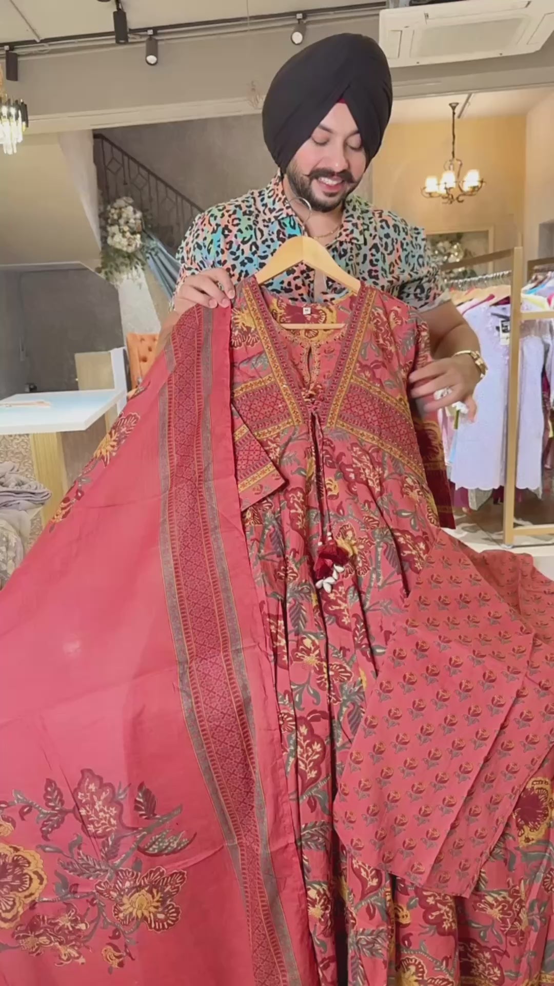 Rust Pure Cotton Floral Print Front Knot Anarkali suit with Beautiful Duppata