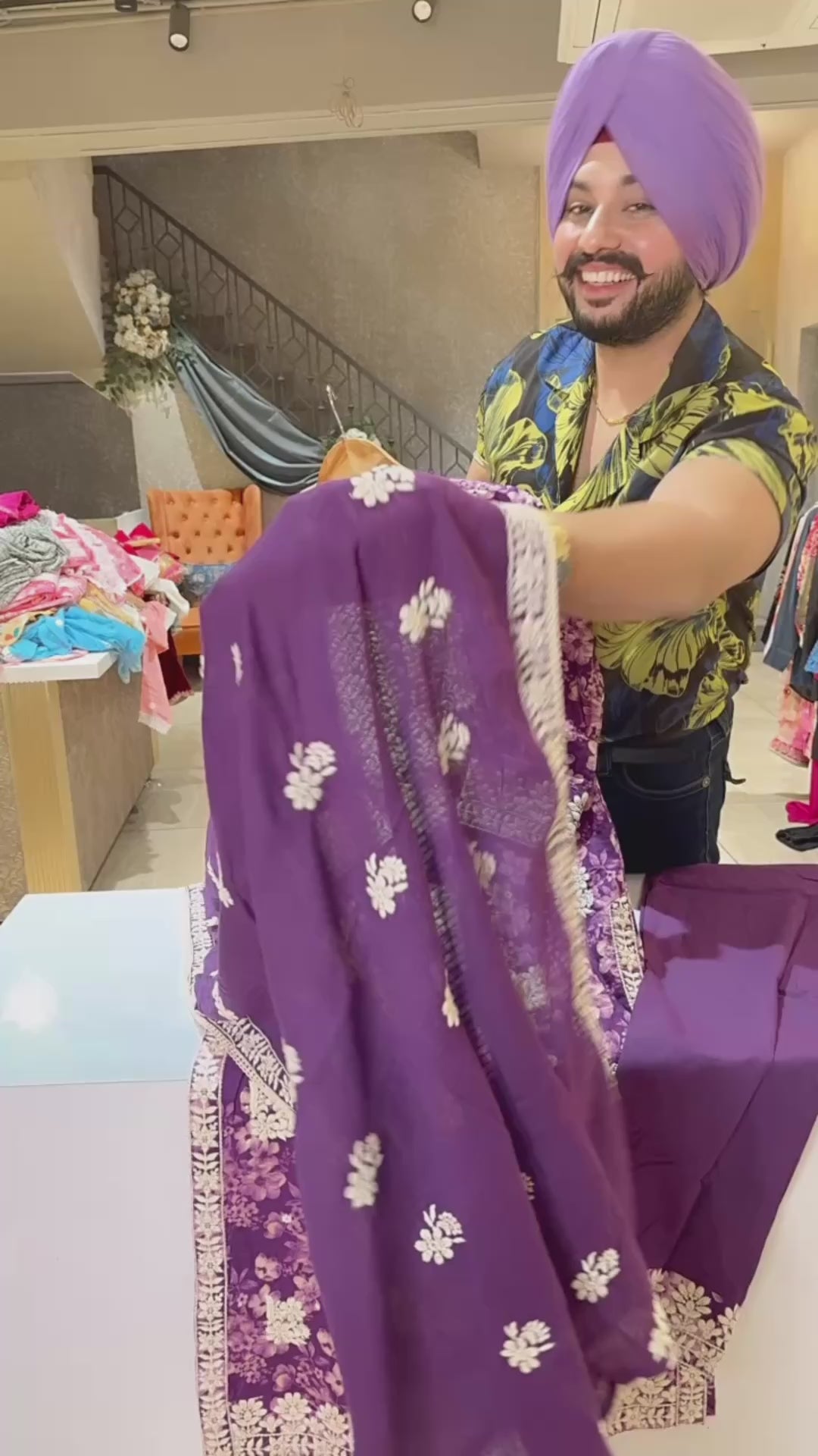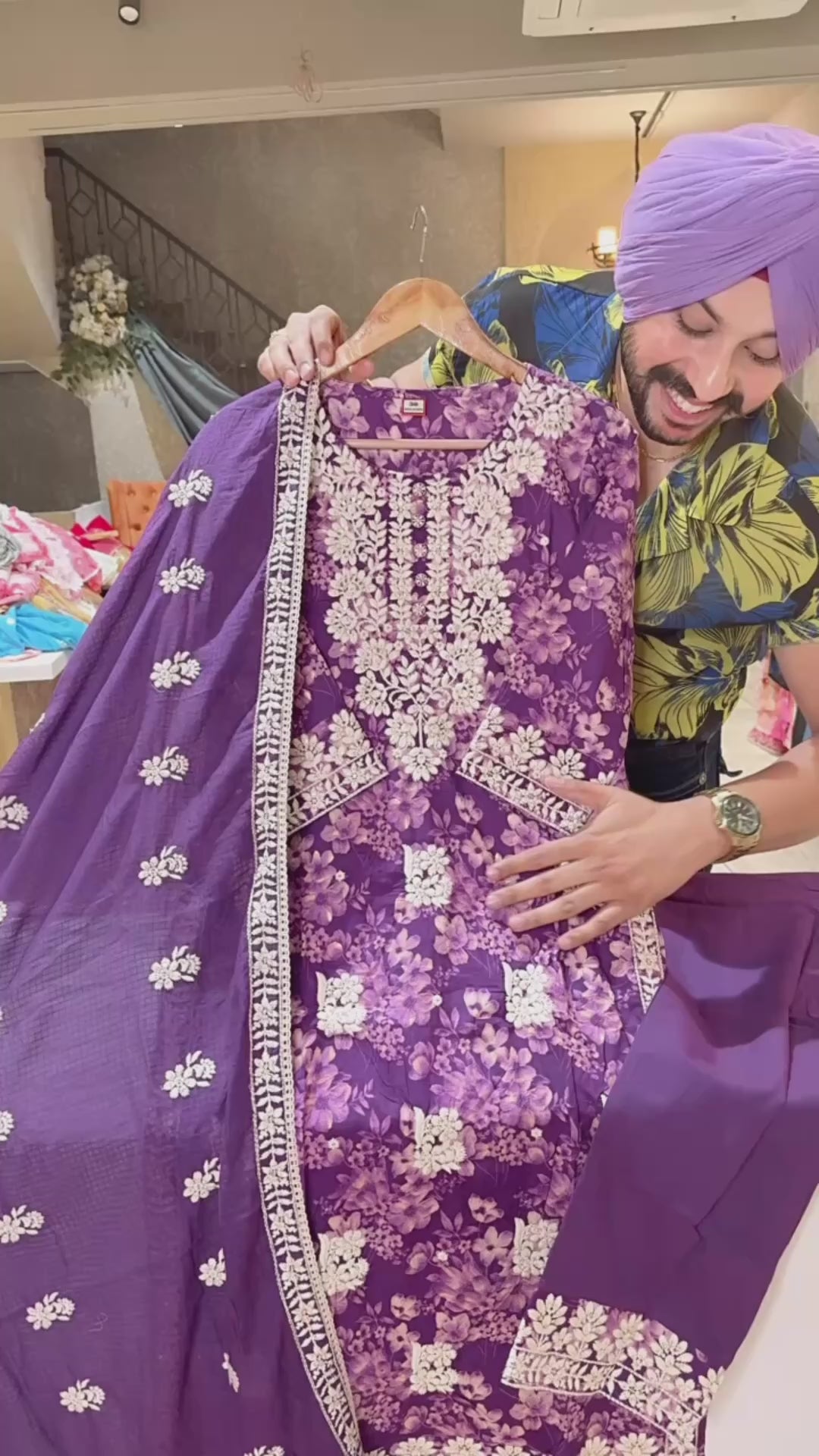 Purple Pure Cotton heavy embroidered Suit with Kota Doria Embroidered Duppata