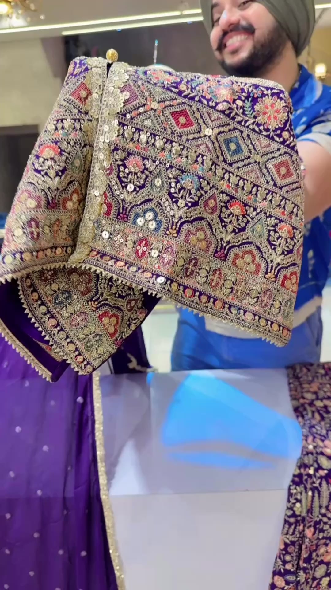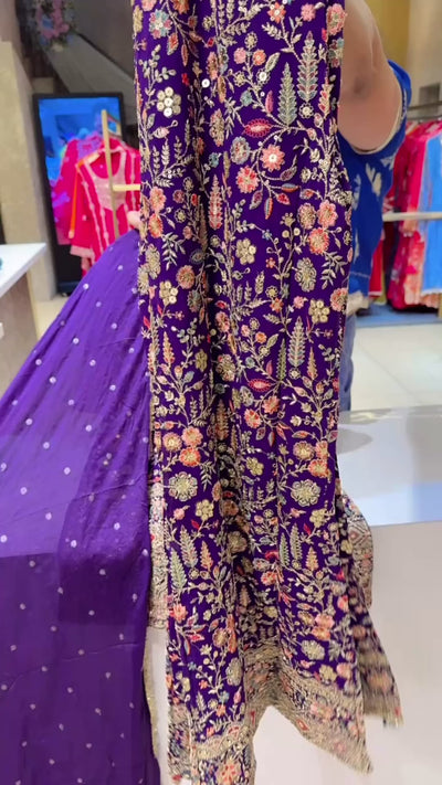 Purple Georgette Heavy Embroidered Bell Bootom Indowestern Suit with Beautiful Chinon Sequins work Duppata