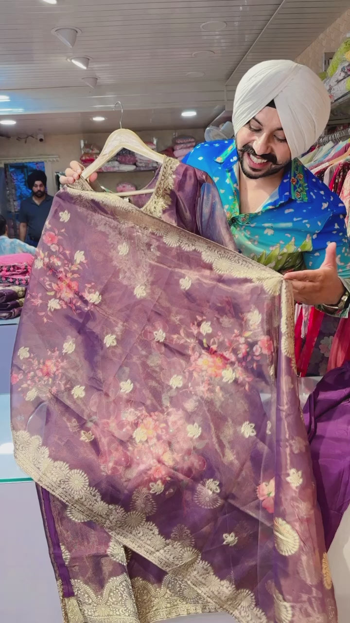 Purple Light weight Shimmer organza Suit with Beautiful Banarasi Look Duppata