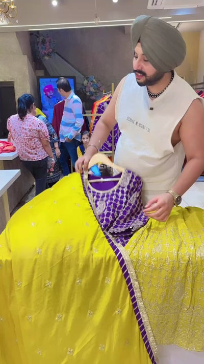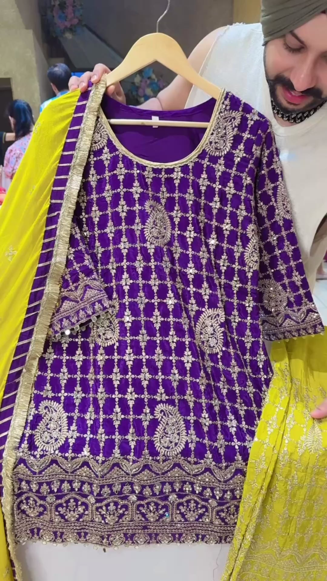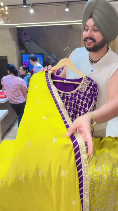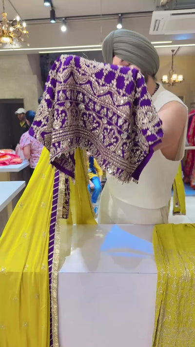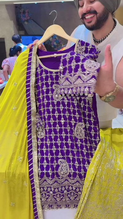 Purple & Lime Crepe Full Heavy Embroidered Sharara Suit with Beautiful Chinon Duppata