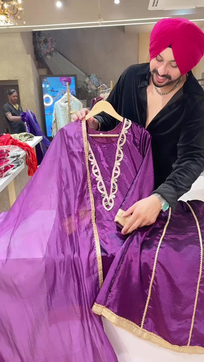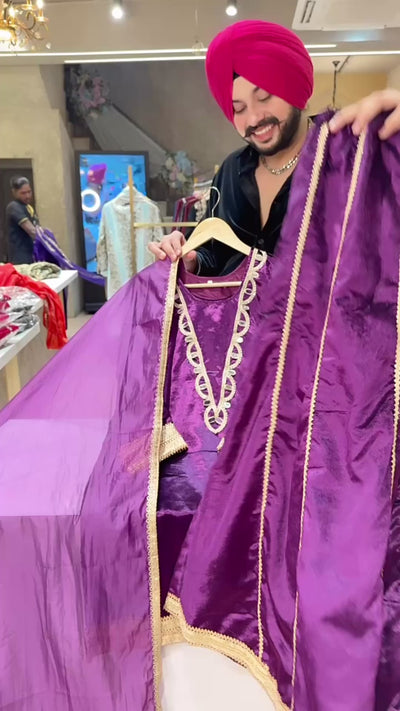 Purple Glossy Velvet Party Wear Sharara Set with soft Organza Duppata