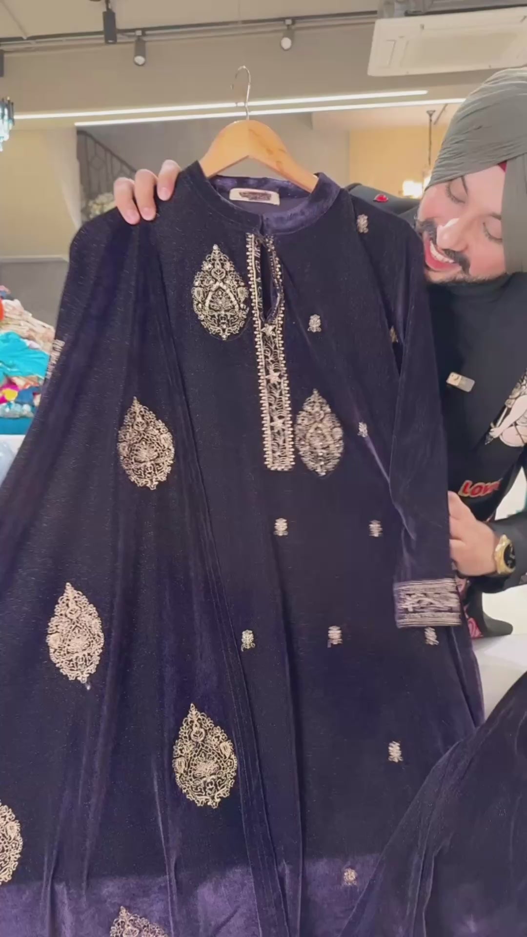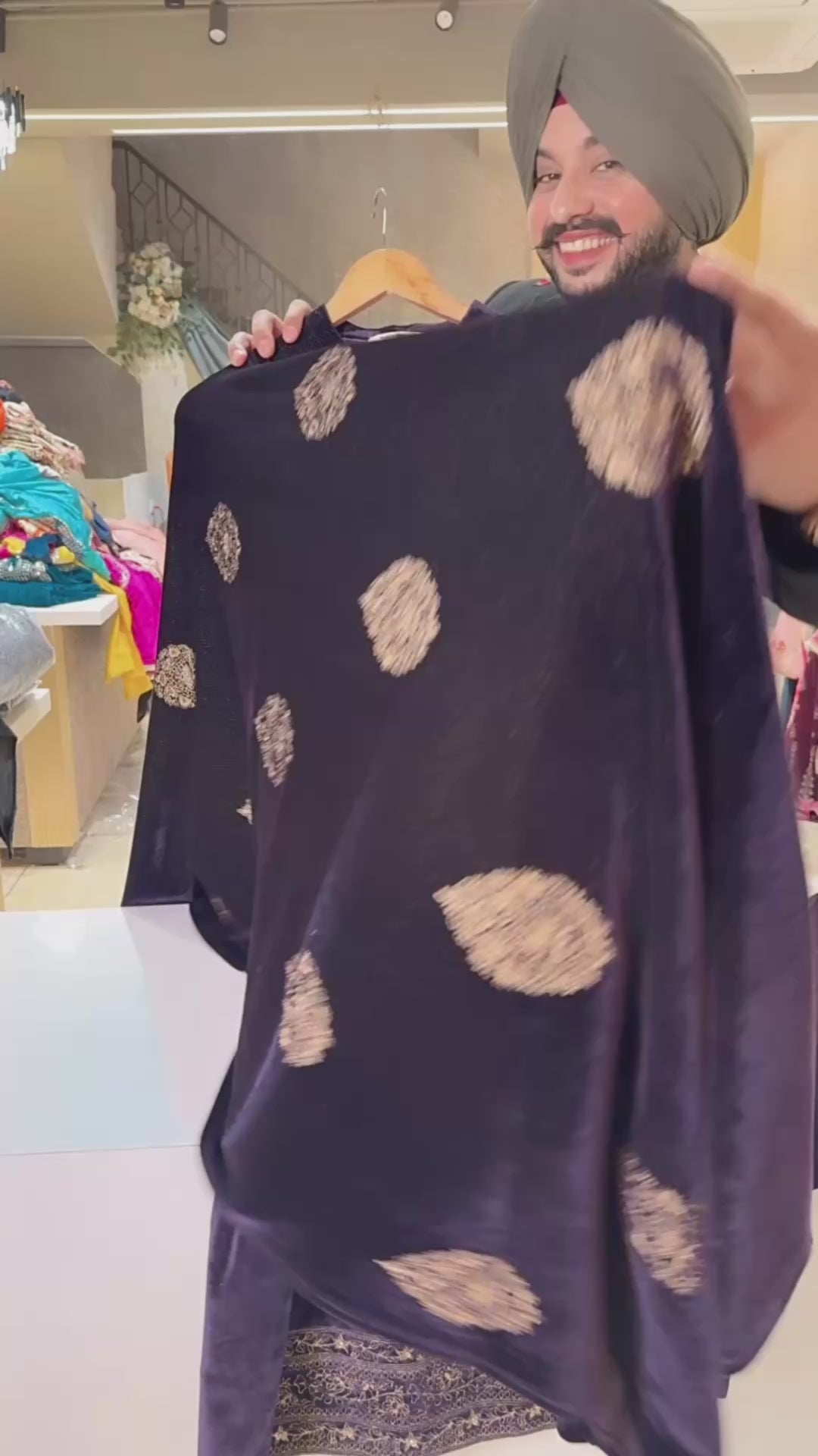 Dark purple Premium Shimmer Velvet Fully Strechable Straight suit with Heavy embroidered Duppata