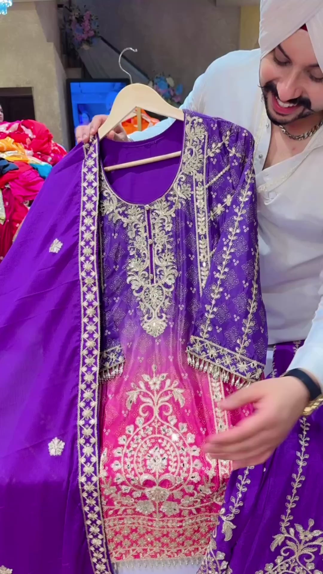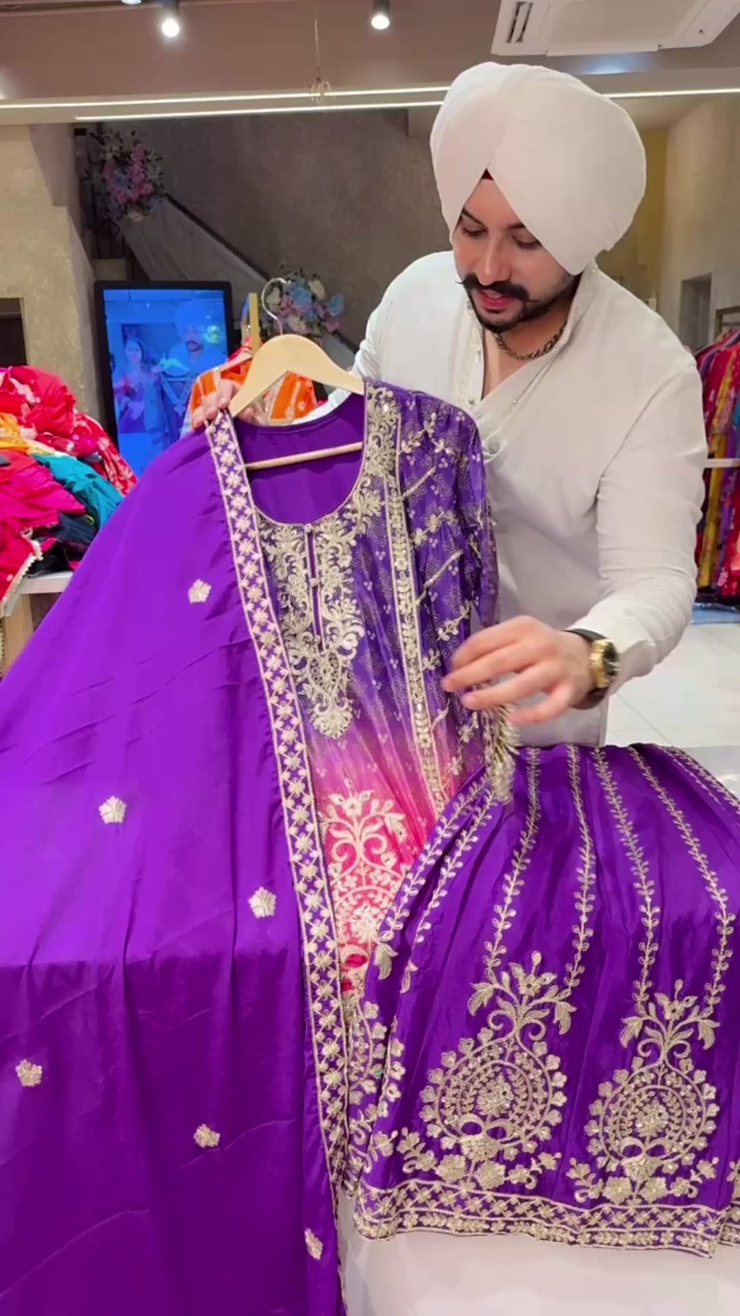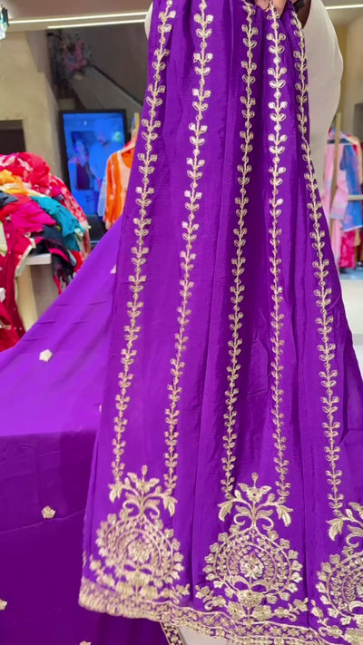 Purple Chinon Bandhej Print heavy embroidered Full Flair Sharara Set