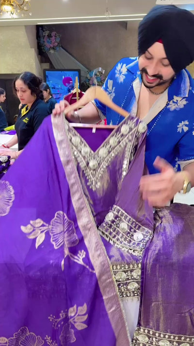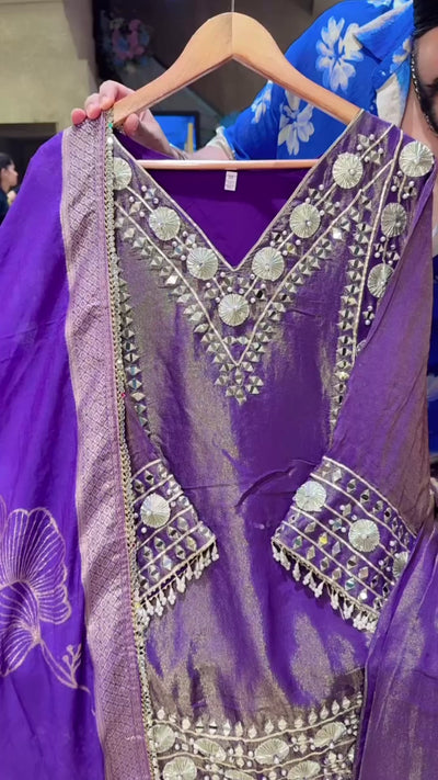 Purple Shimmer Silk Heavy Gotta Embroidered & Pearl Work Farshi Salwar Suit with Beautiful Banarasi Look Duppata