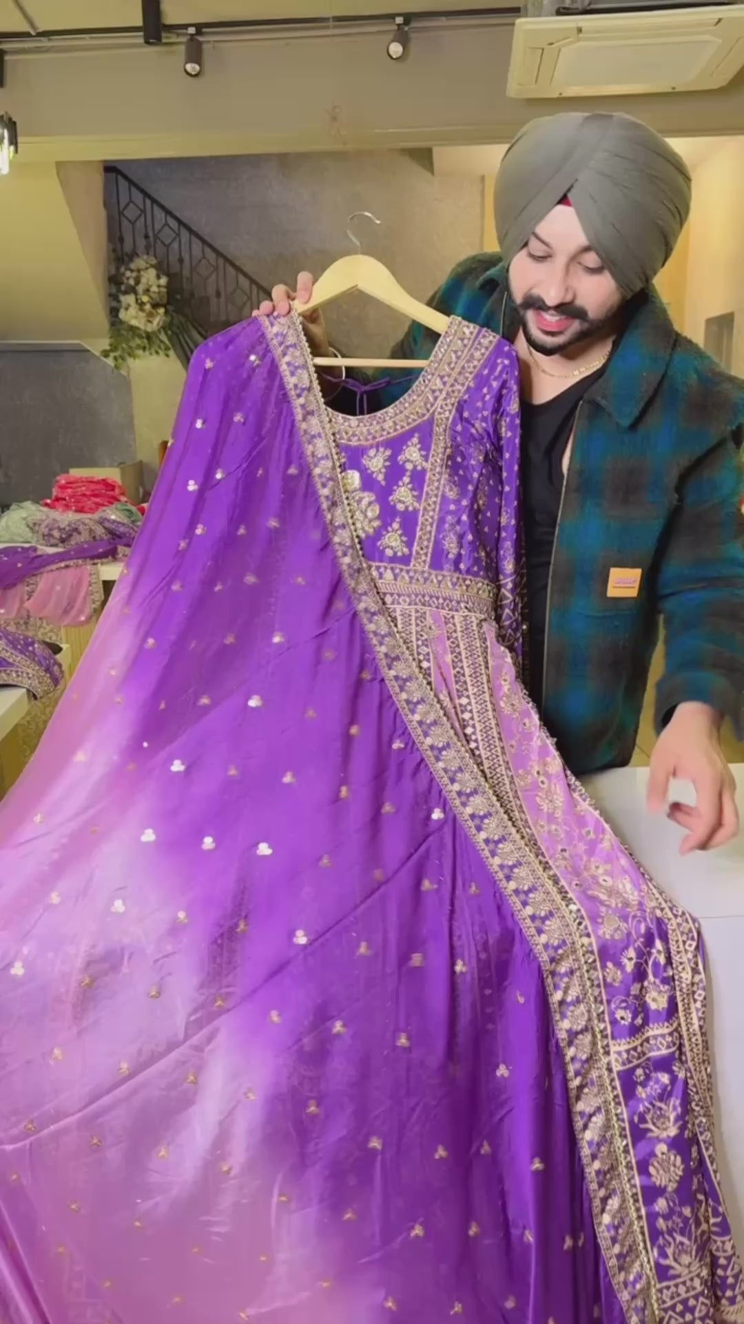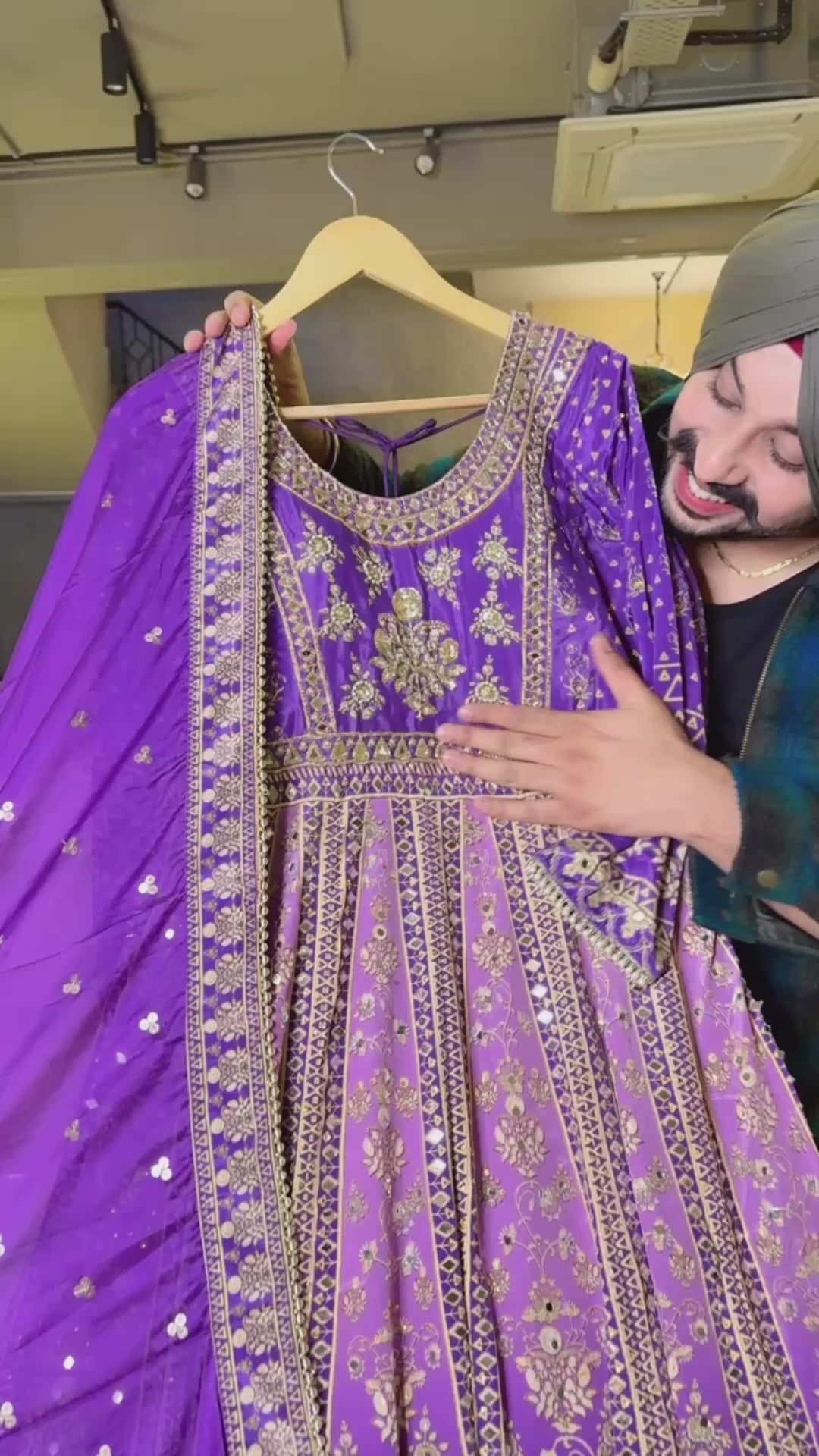 Purple Crepe heavy Hand work Anarkali Gown with Beautiful Duppata
