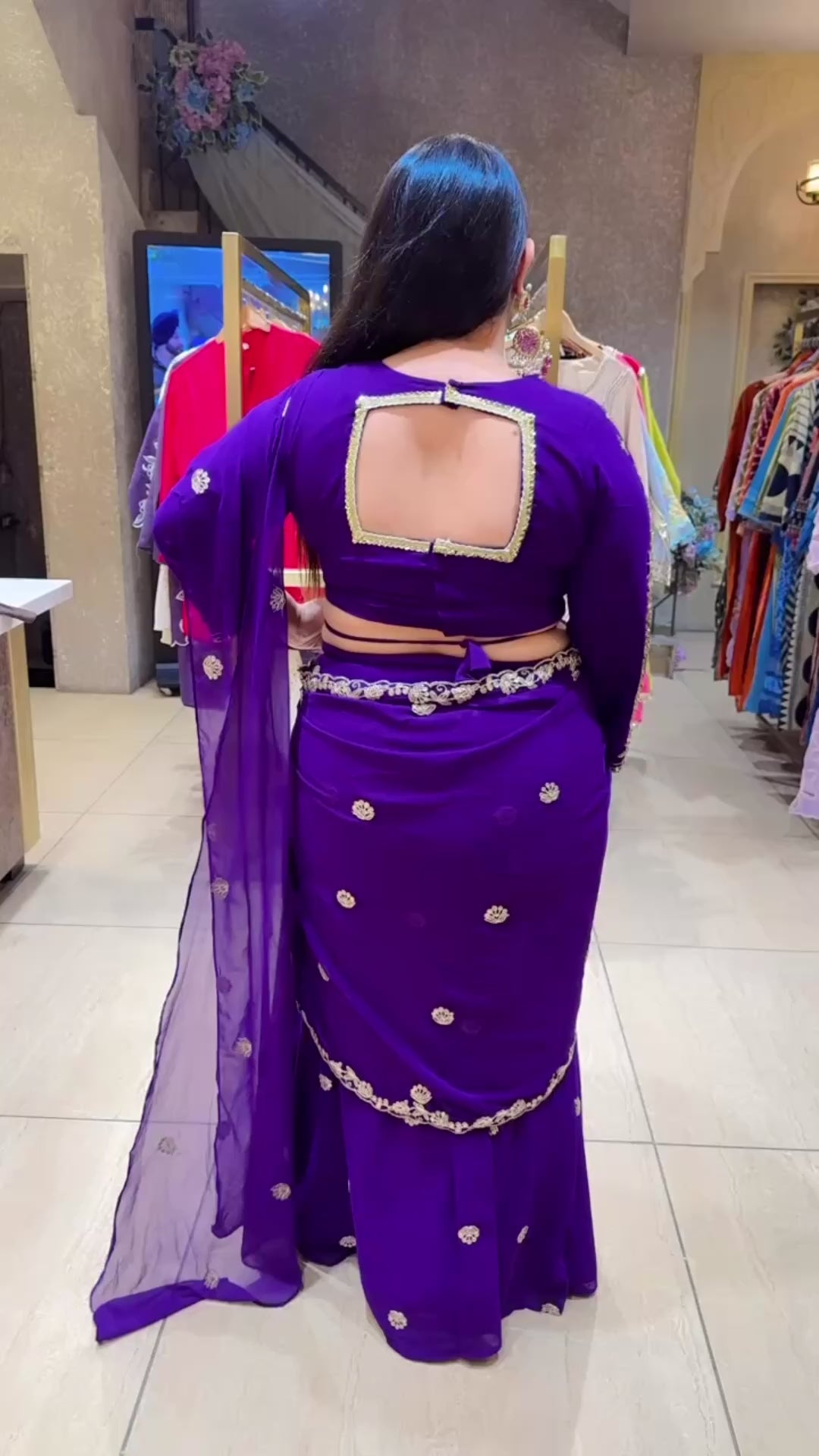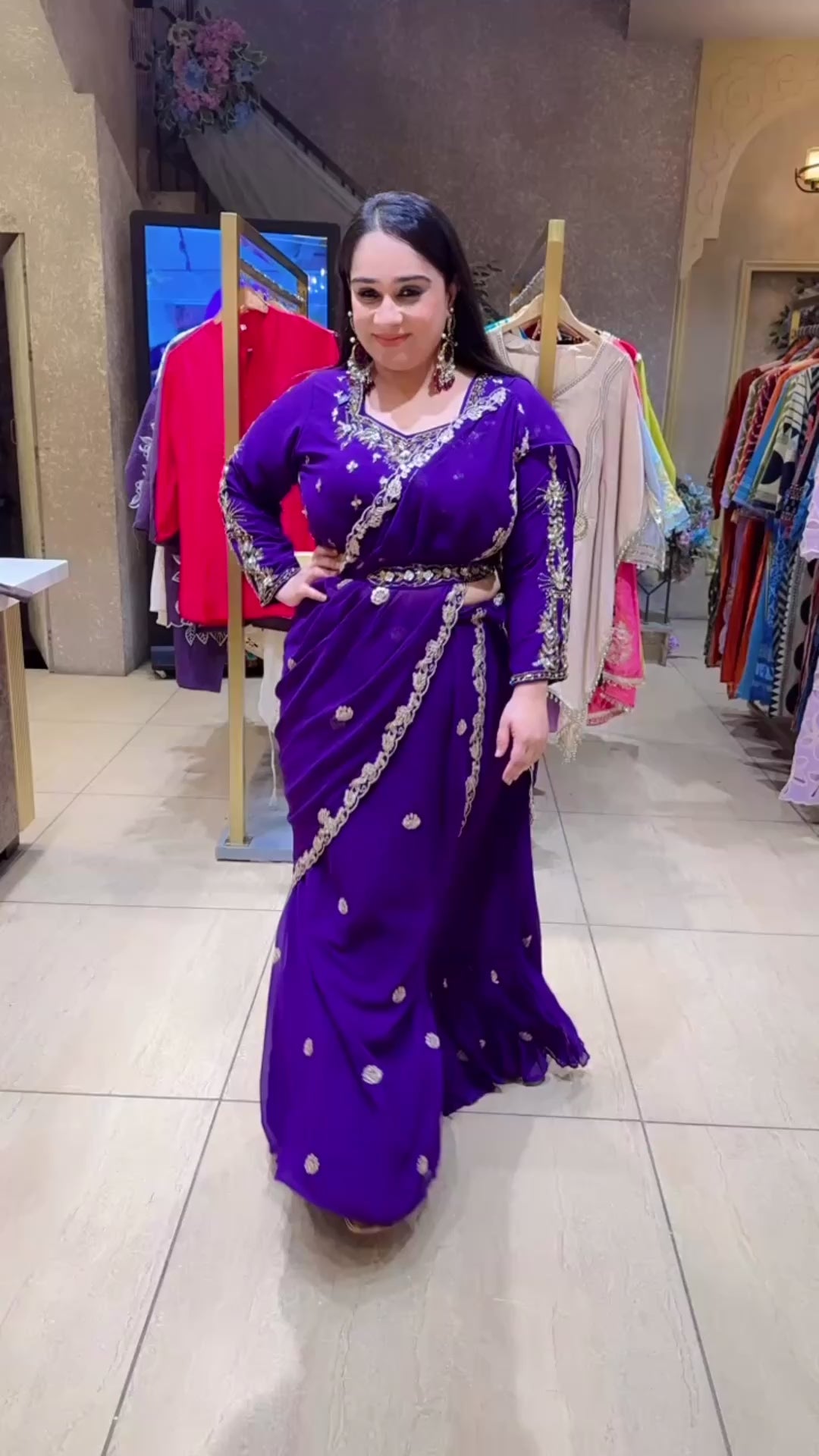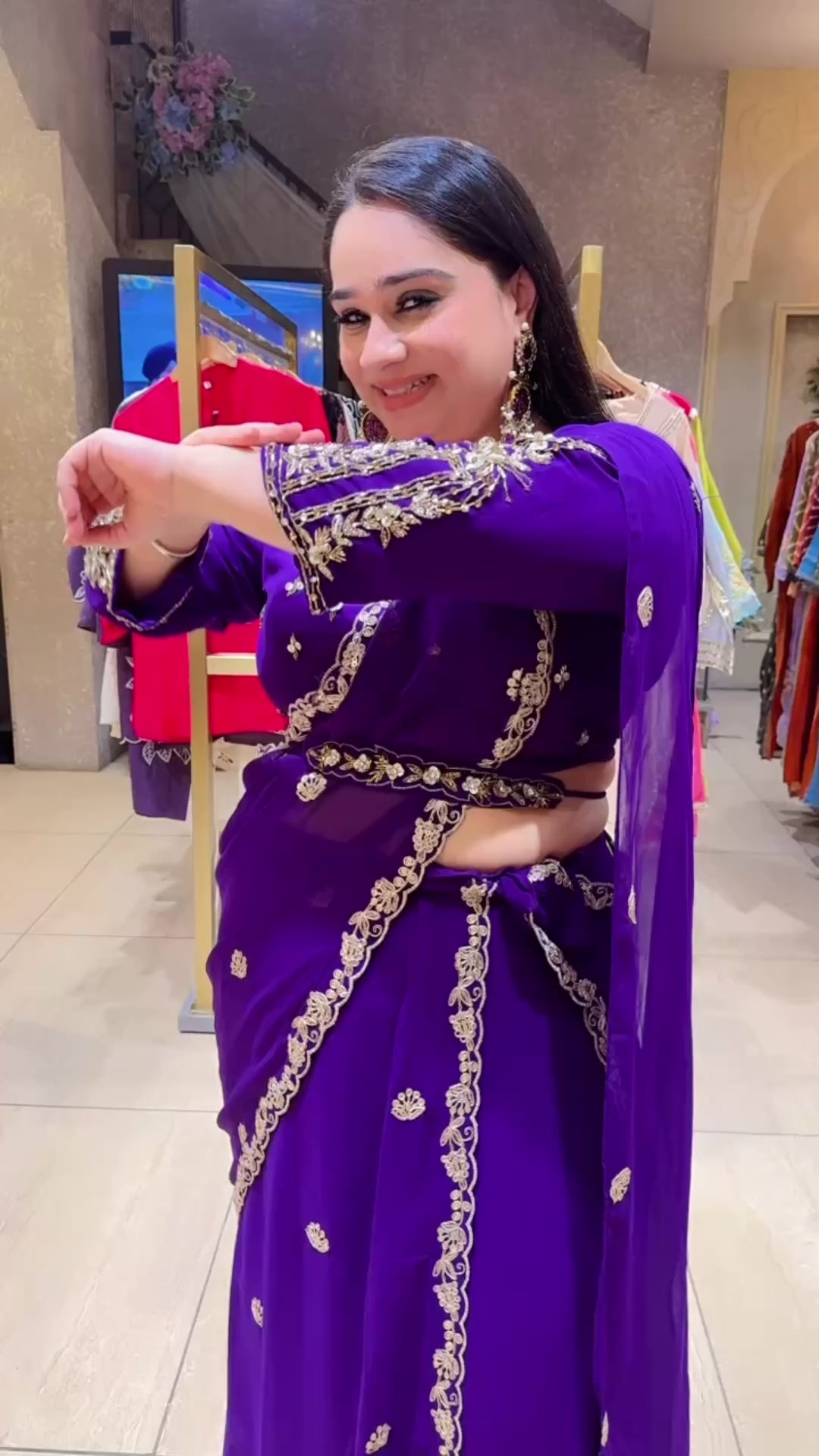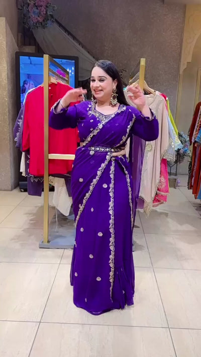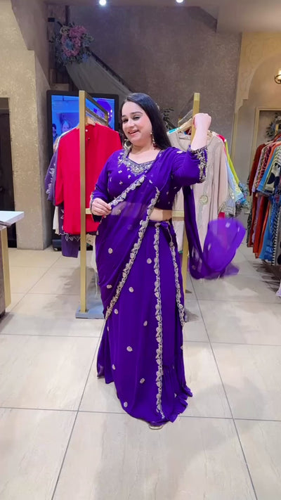 Purple Georgette Hand embroidered Drape Crop set