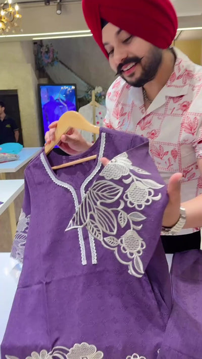 Purple Imported Stuff self textured Embroidered Semi Formal Coord set