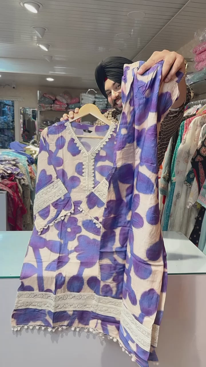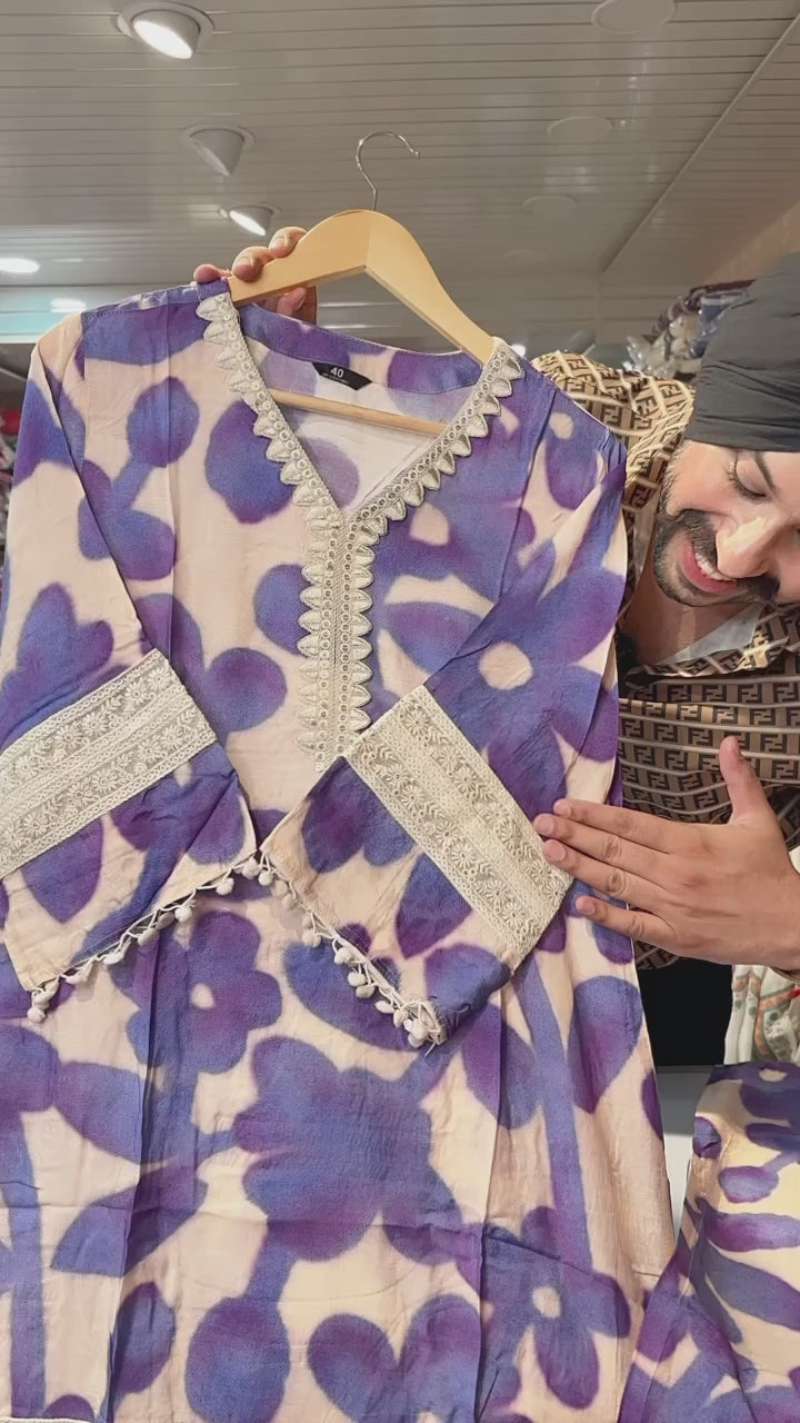Purple Muslin silk Pakistani Coord set with Beautiful lace work