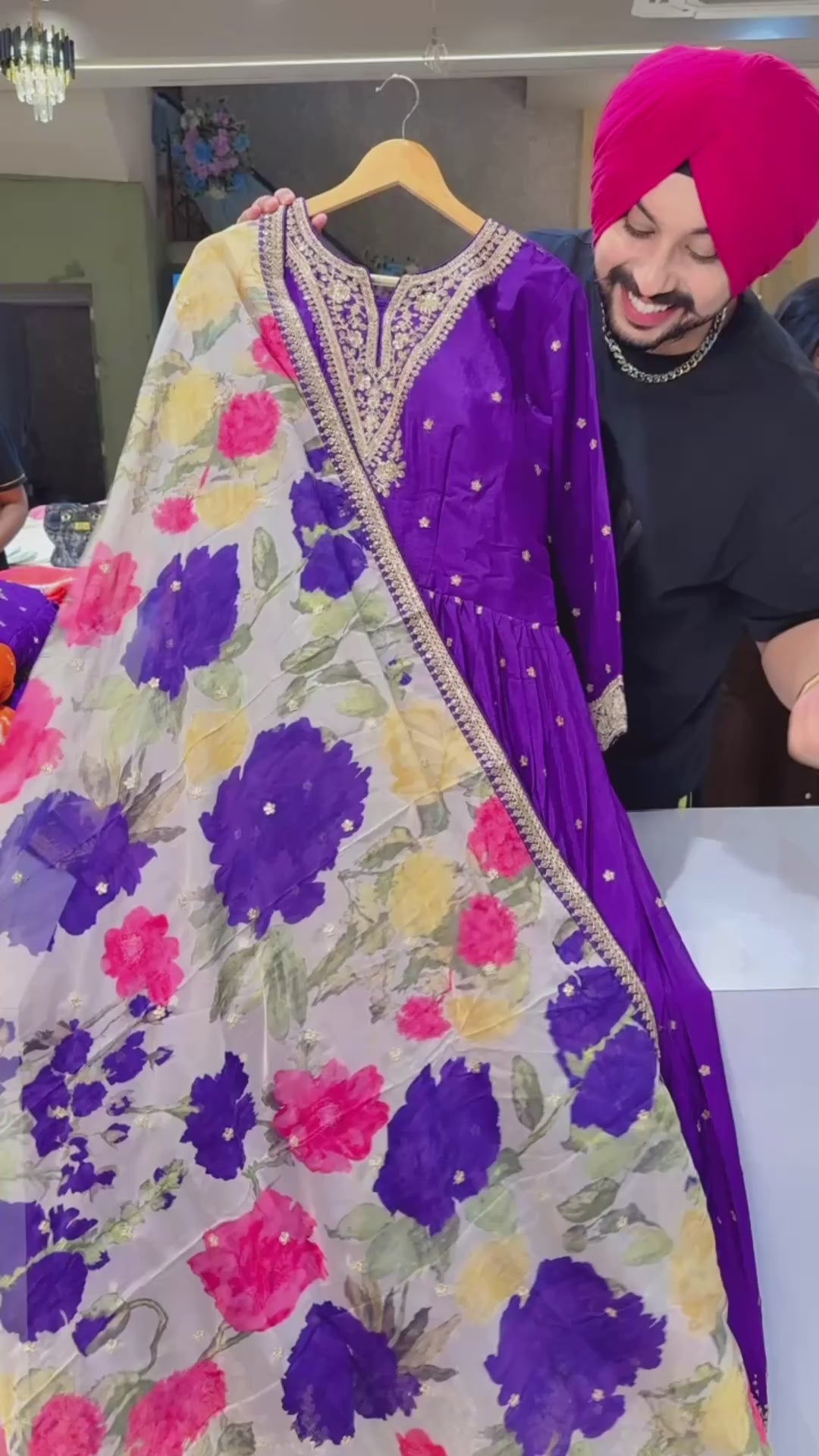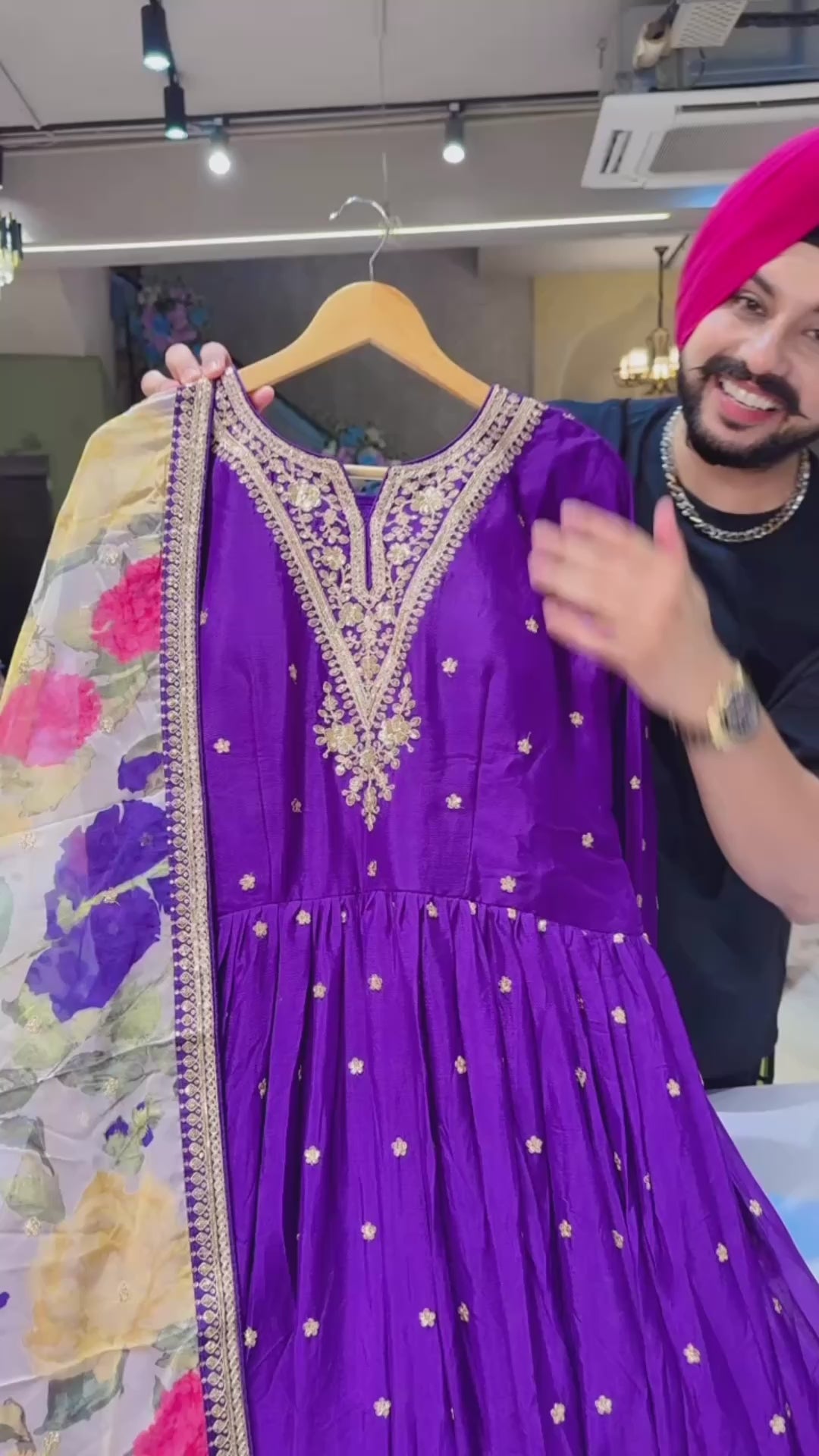 Purple Premium Chinon Heavy Embroidered Floor Length Anarkali Gown With Chinon Beautiful Duppata