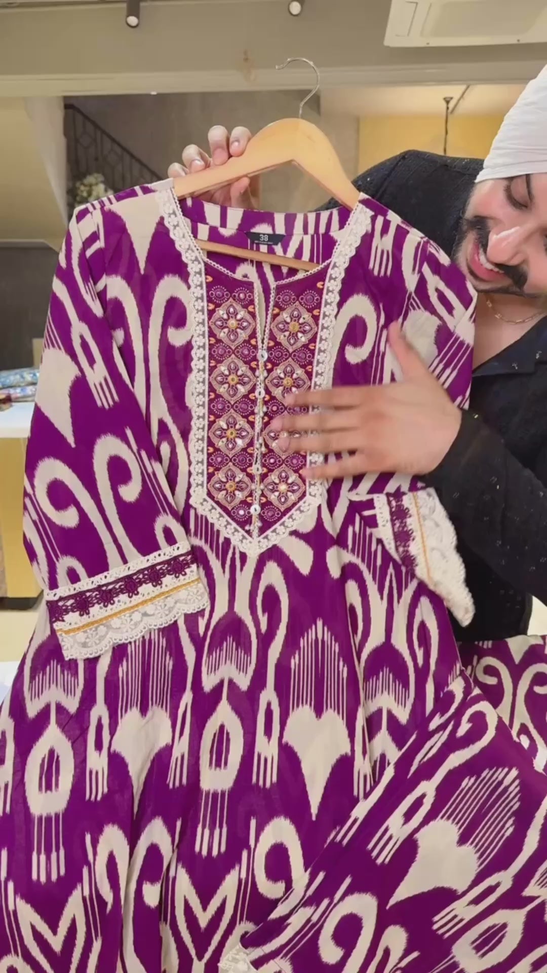 Purple Pure Cotton Paplum Coord set with embroidery Work on neck