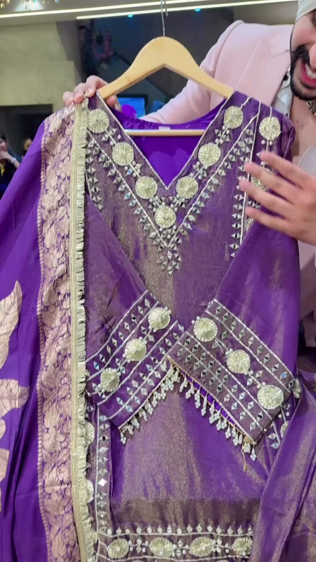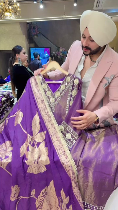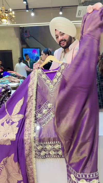 Purple Shimmer Silk Heavy Gotta Embroidered & Pearl Work Farshi Salwar Suit with Beautiful Banarasi Look Duppata