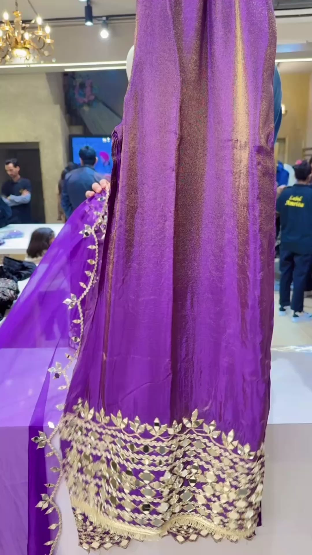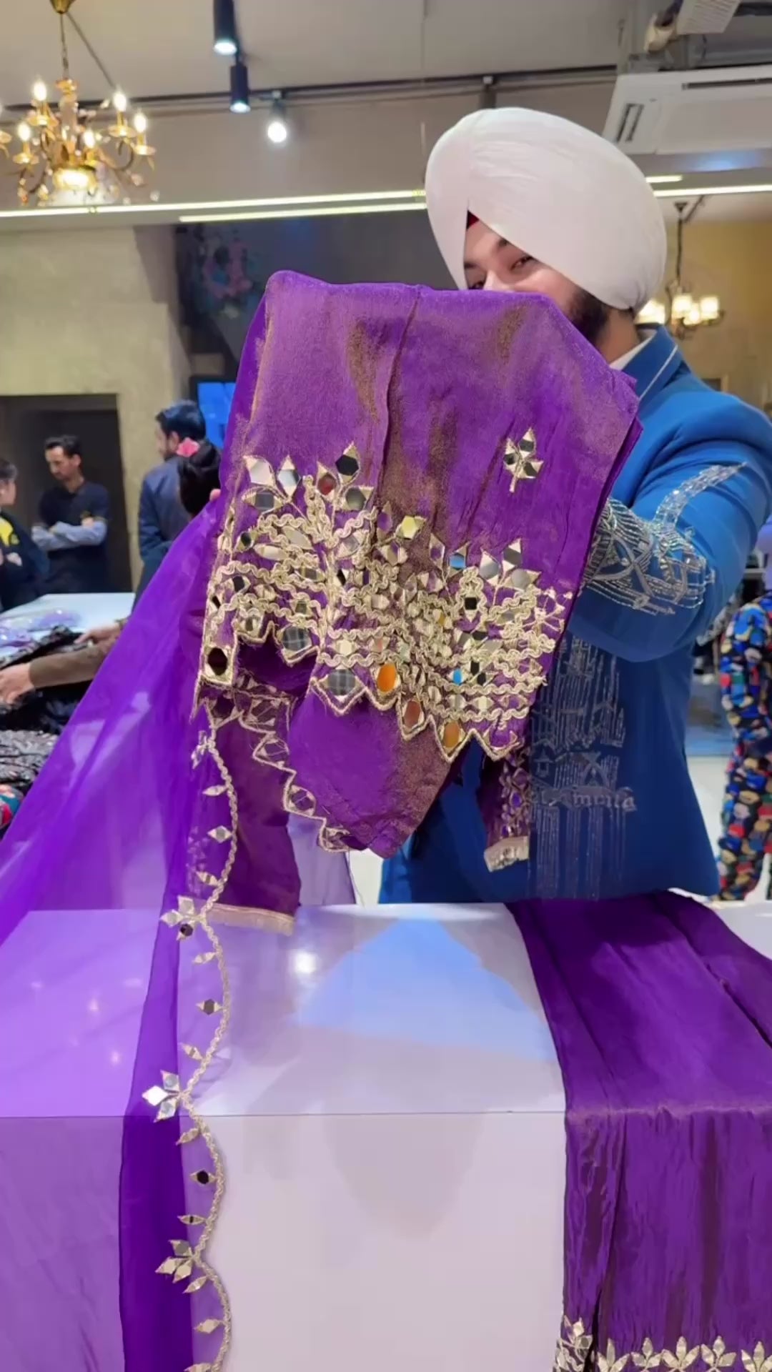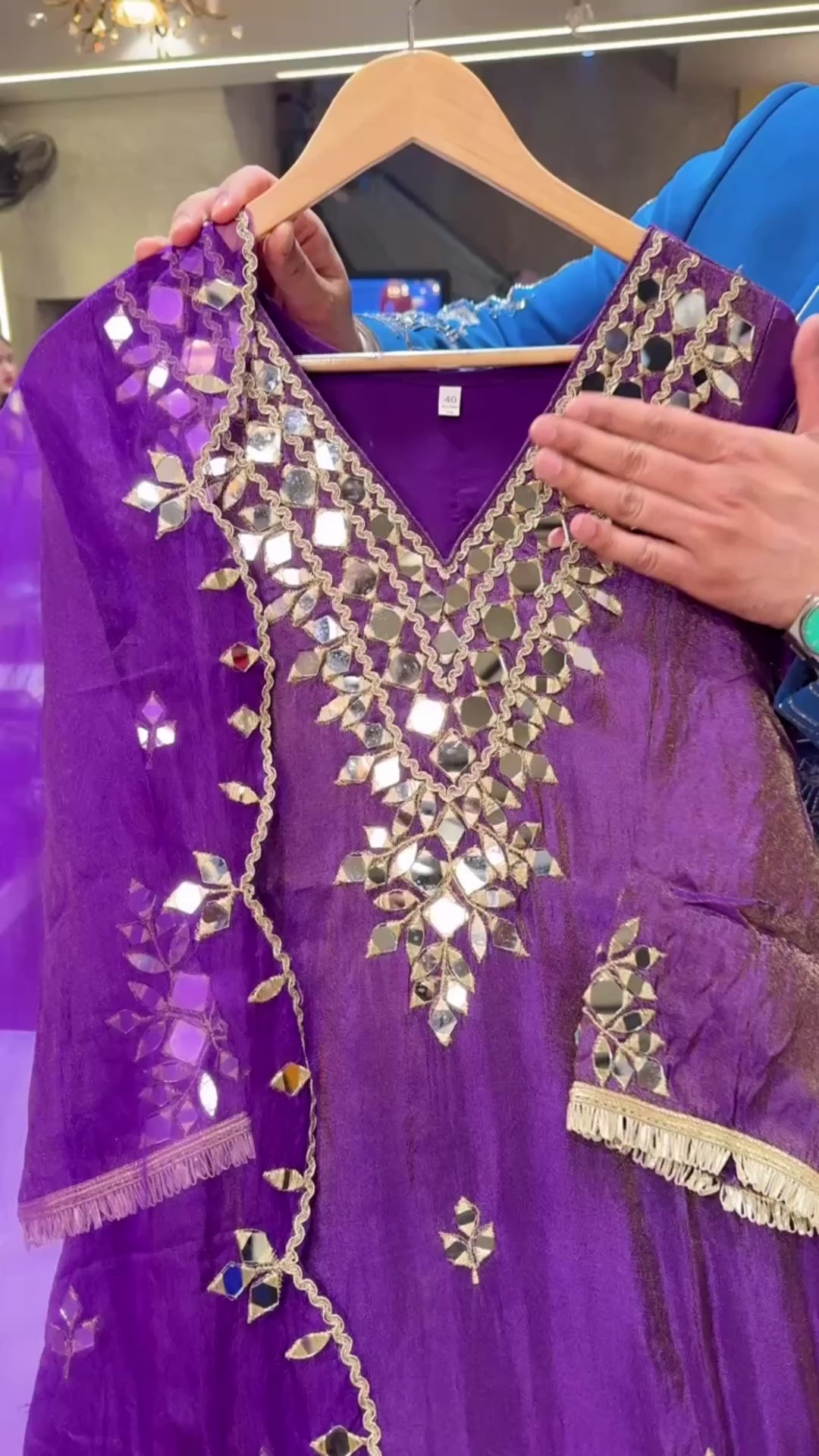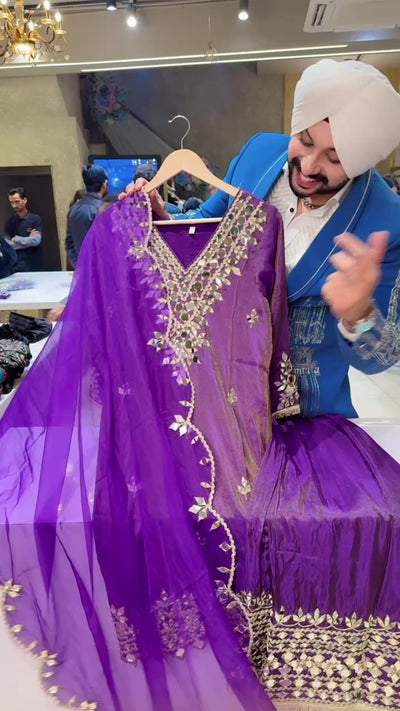 Purple Shimmer Silk Heavy Mirror Work Partywear Straight suit with Heavy Mirror work on Plazo & Duppata