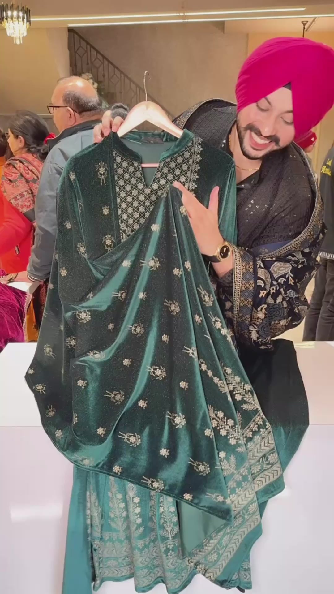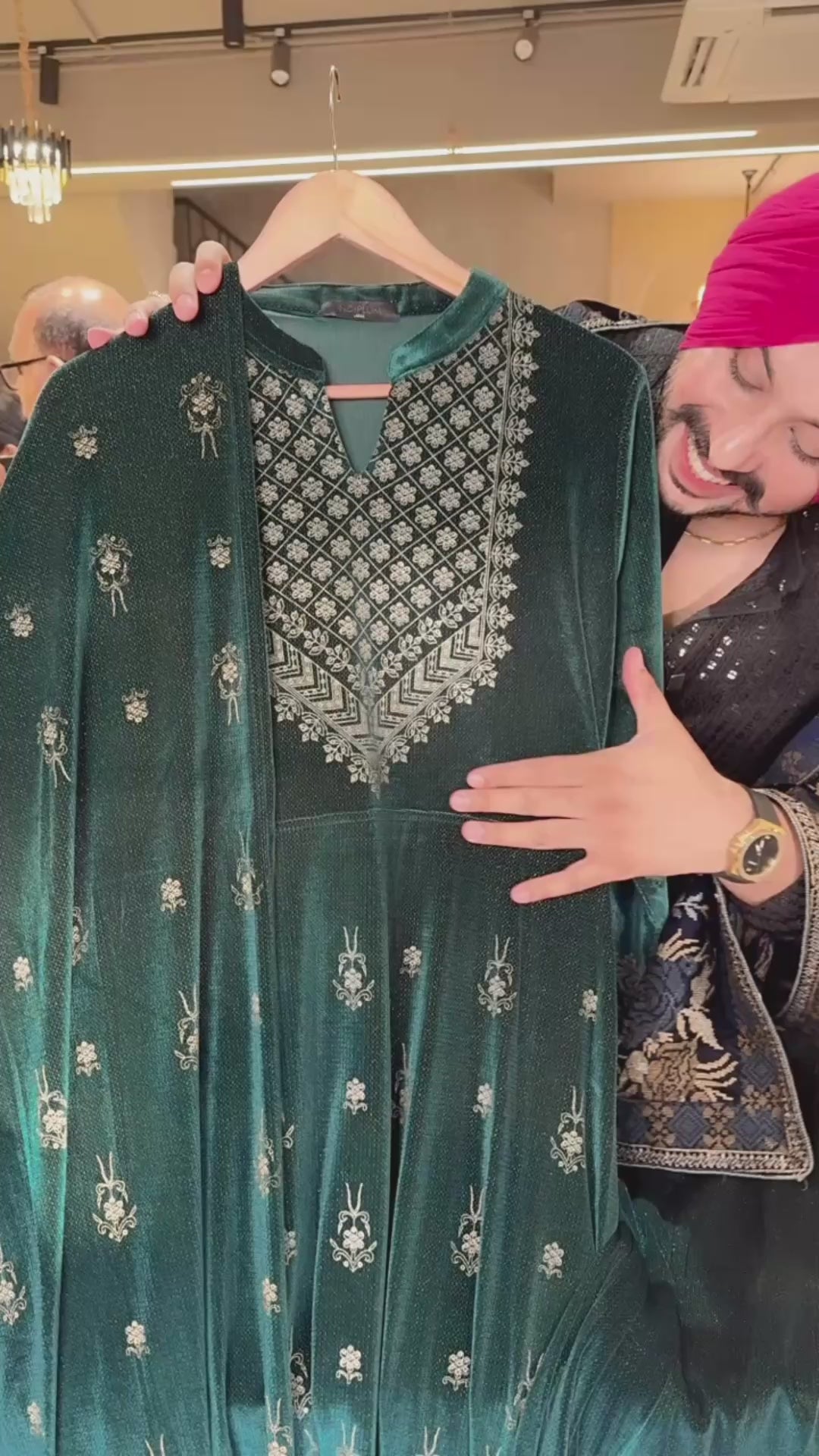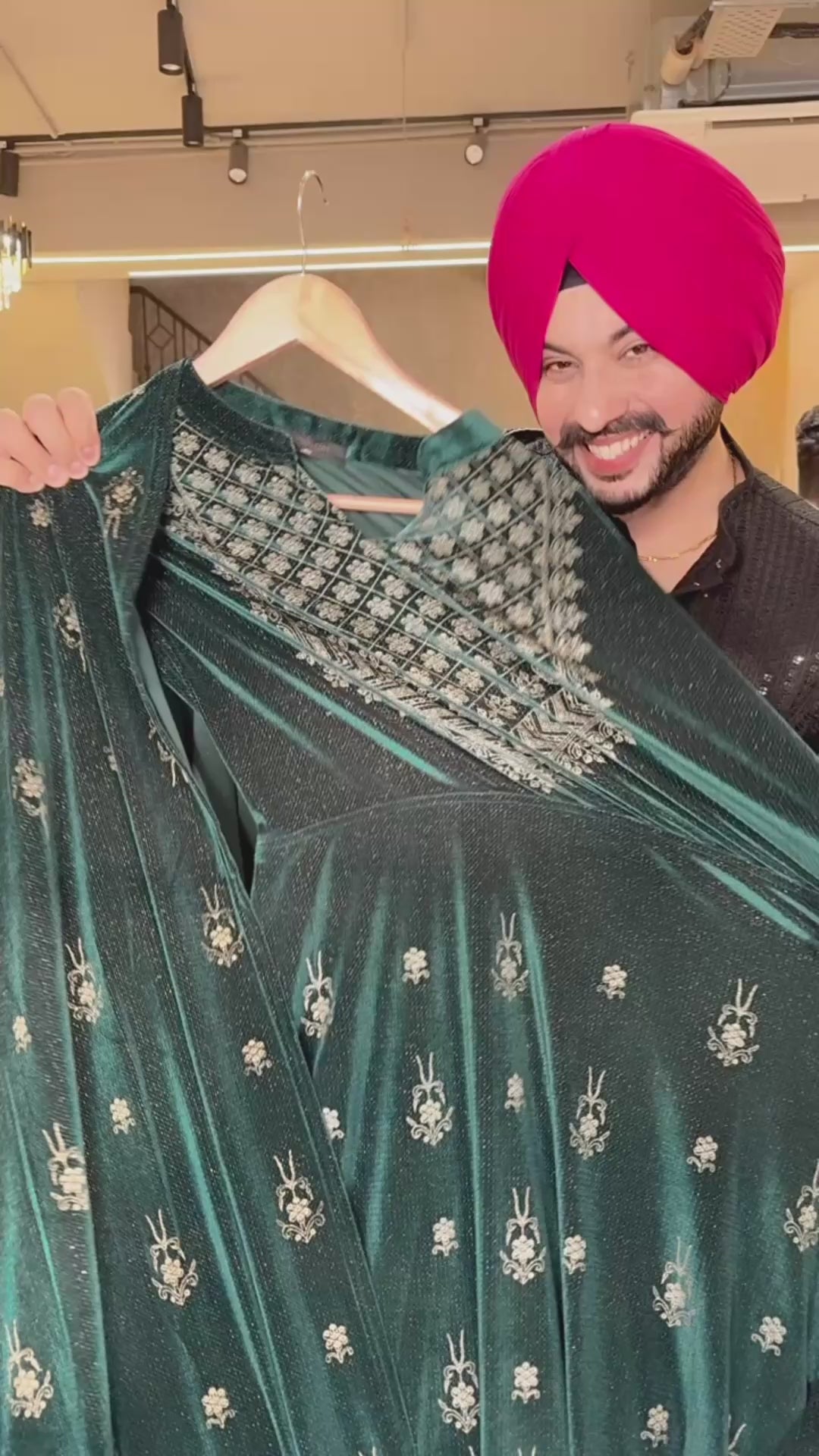 Green Premium velvet Fully Strechable Anarkali suit with Beautiful Duppata