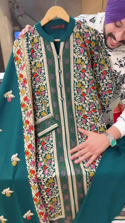Ramagreen Woolen Fully Kashmiri Embroidered Straight Suit with Beautiful Woolen Duppata