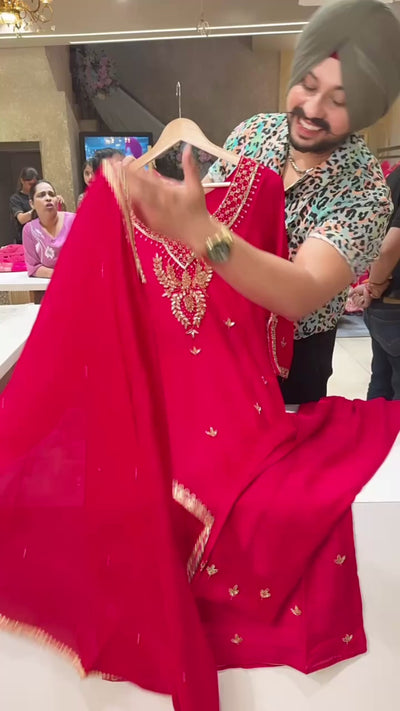 Rani Chinon Heavy Hand Straight Suit with Chinon Beautiful Duppata