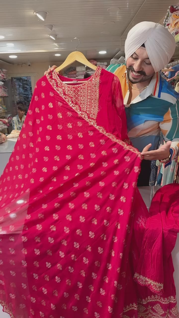 Rani organza Anarkali suit with beautiful Embroidery work on neck, border & Duppata