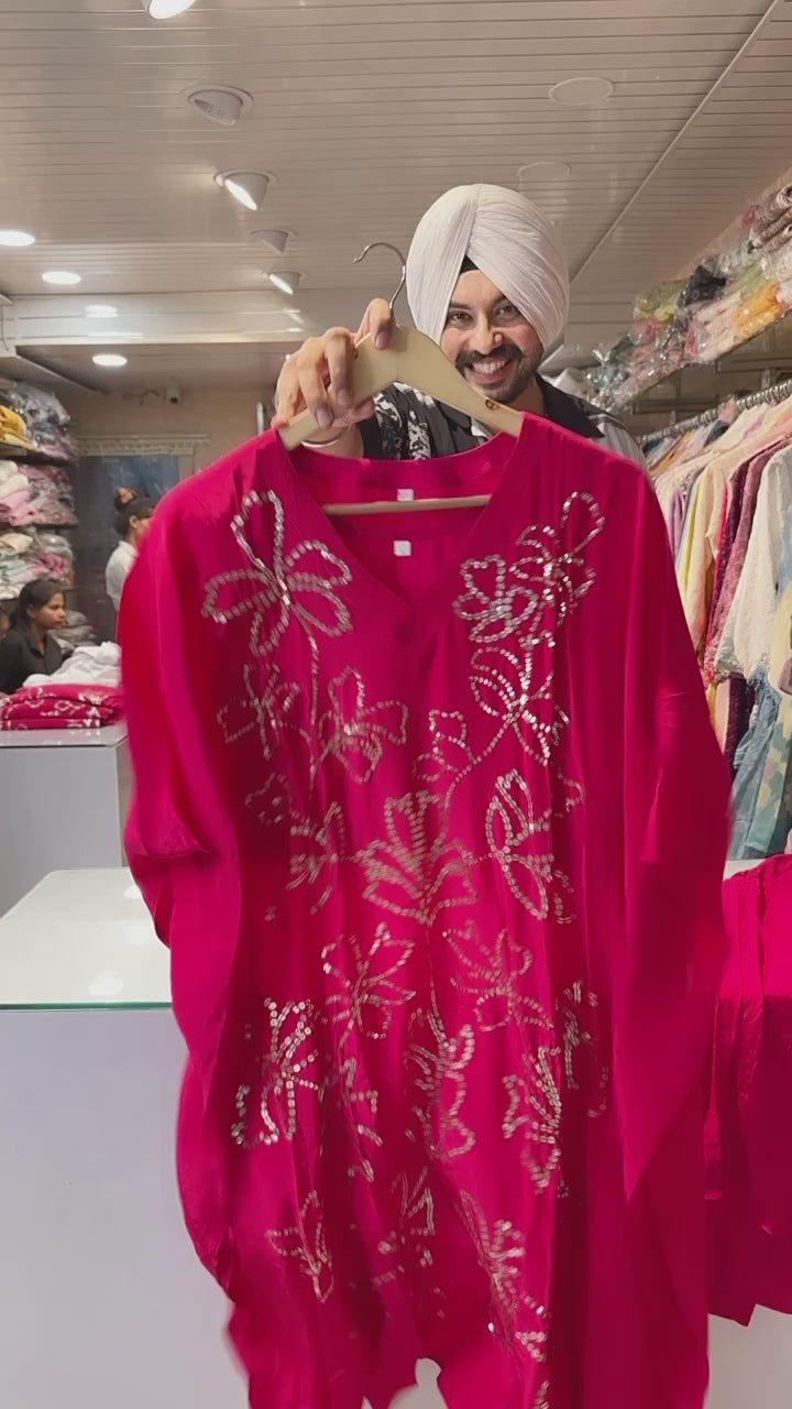 Rani pink Crepe kaftan Coord set with Beautiful sequence work all over