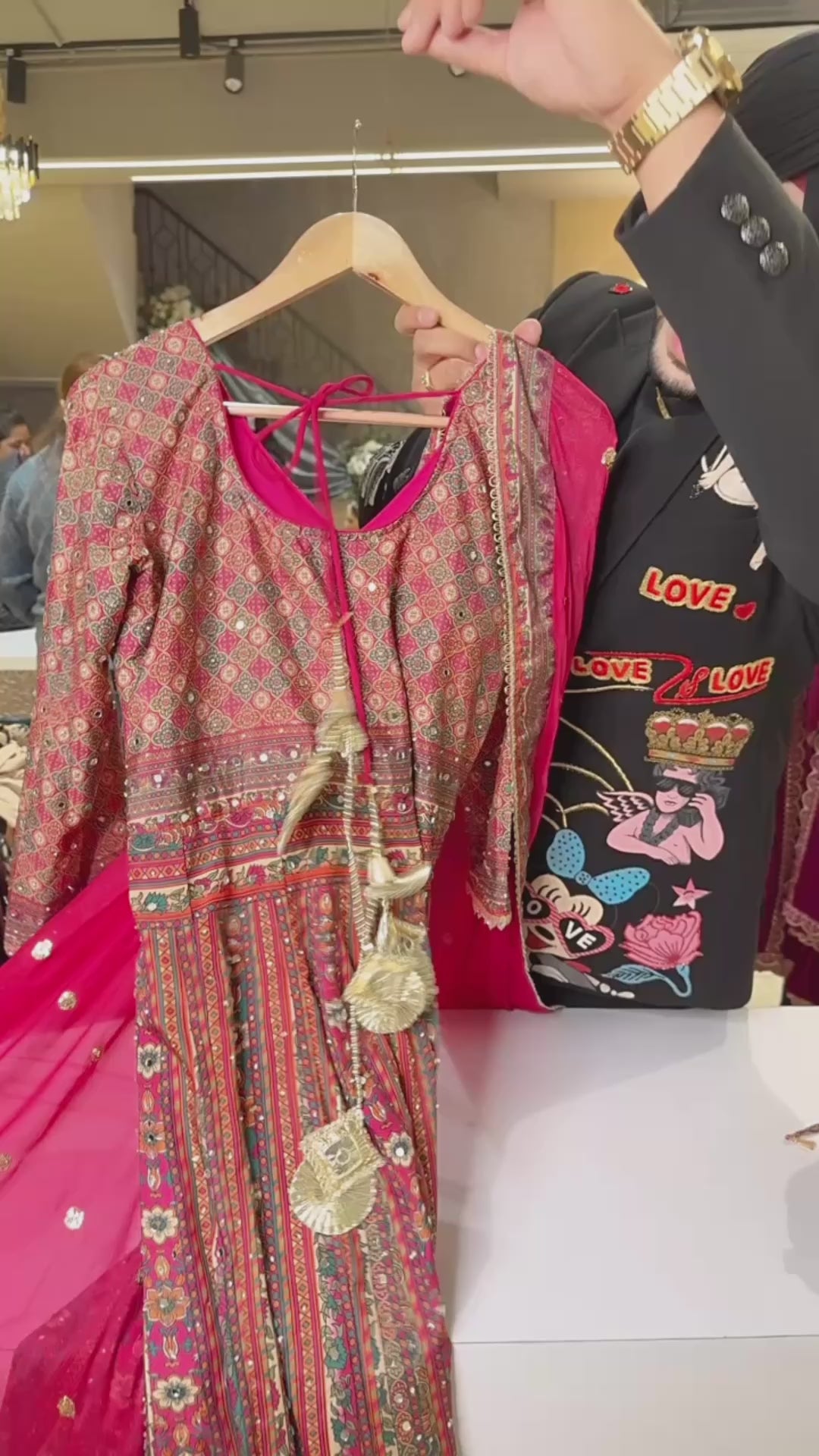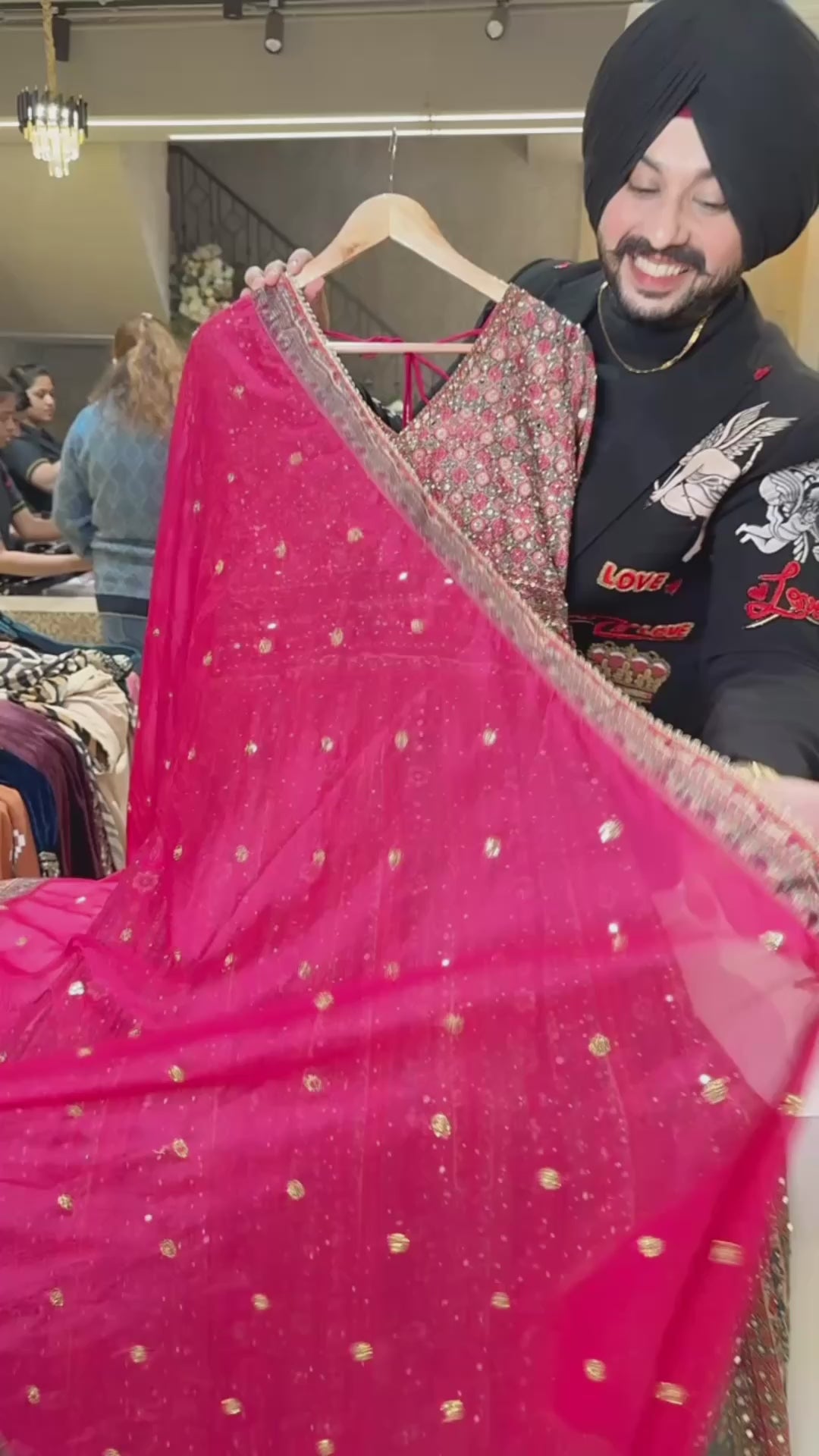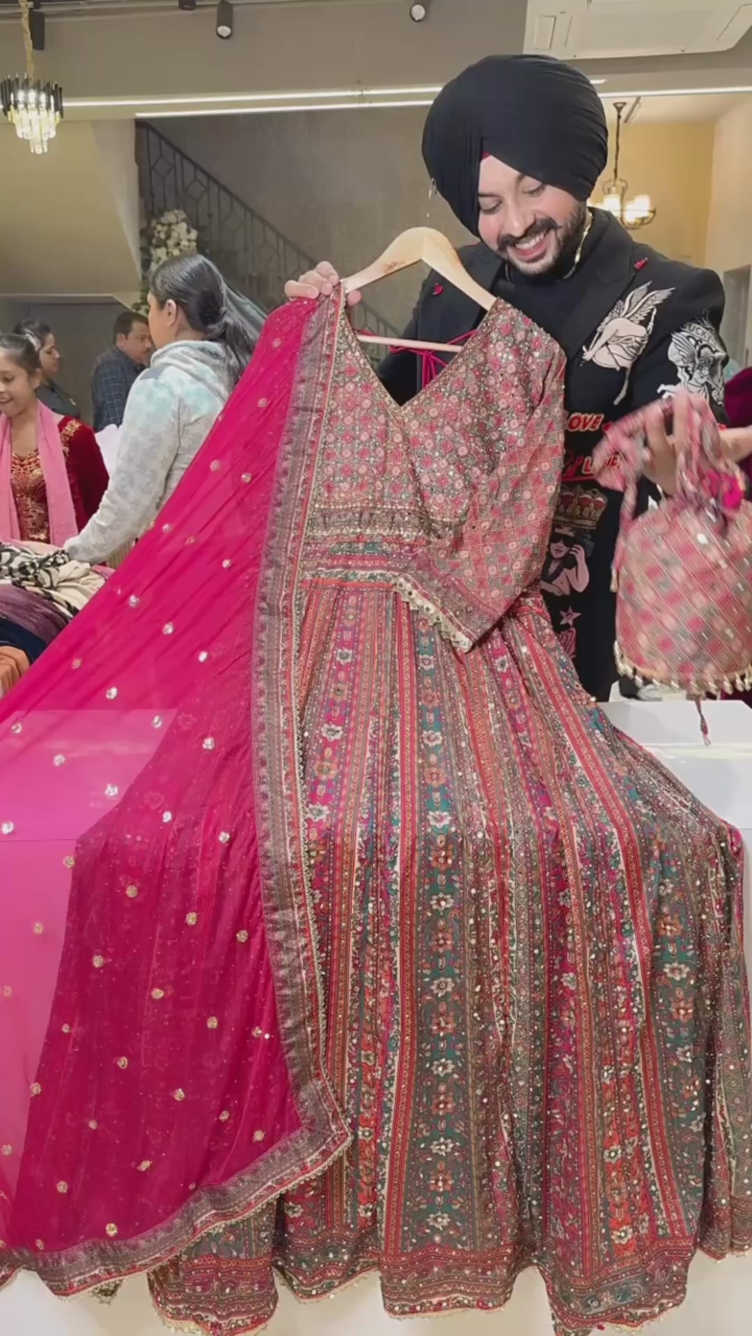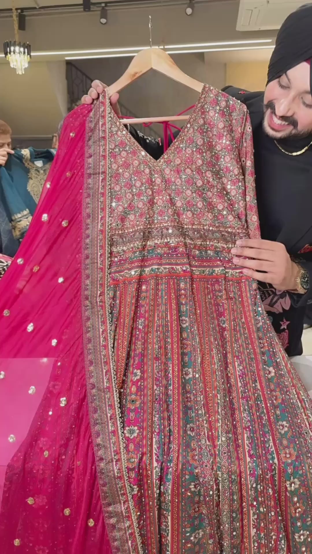 Rani pink & Multicolored Heavy Embroidered & mirror pasting Crepe Anarkali Gown with Stylish Potli & Sequence Work Duppata