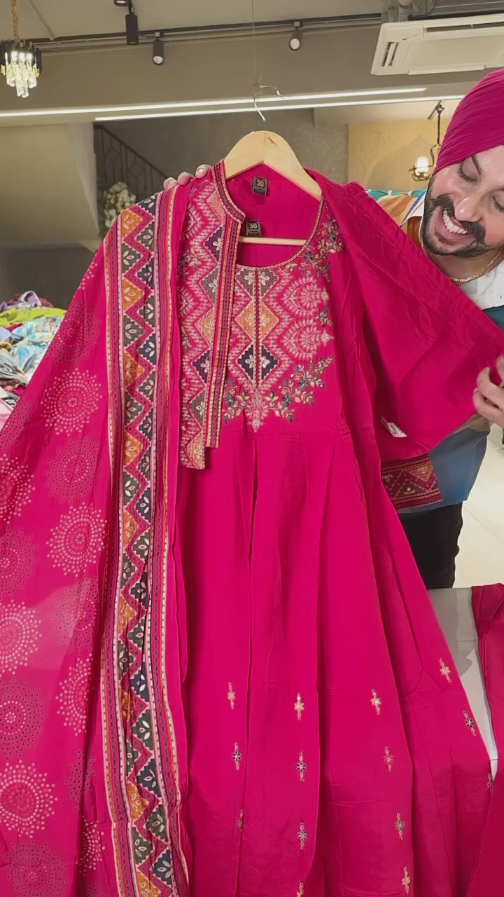 Rani pink muslin silk Embroidered Anarkali suit with cut sleeves embroidered Jacket