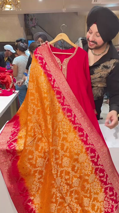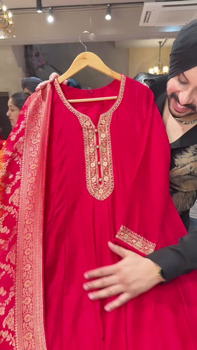 Anaari Premium Silk Embroidered Party Wear Anarkali Gown with Beautiful Floral print Solk Dupppata