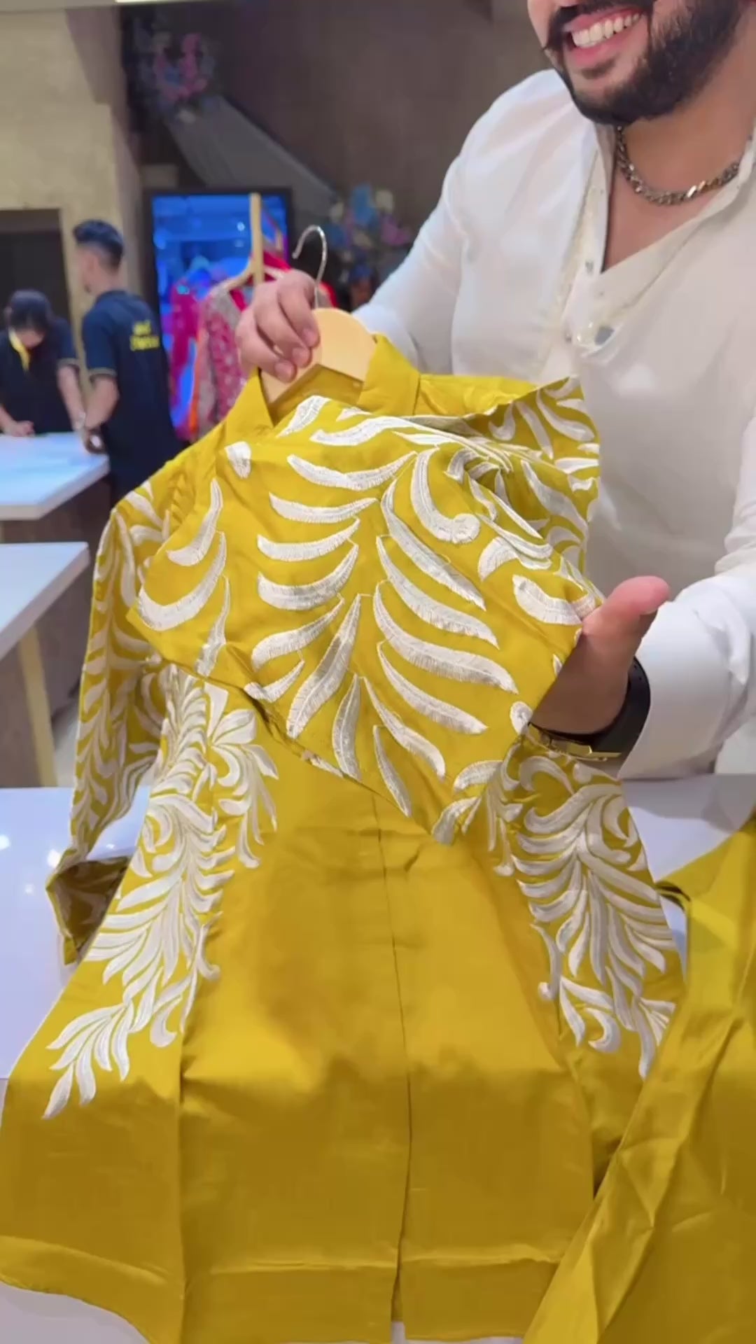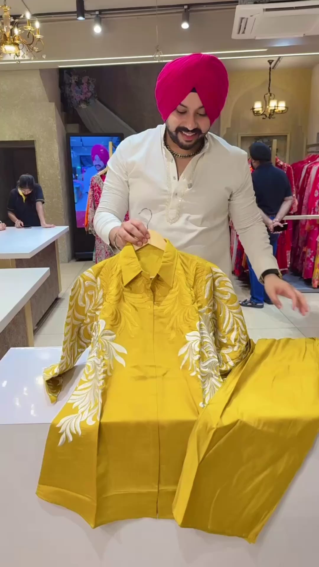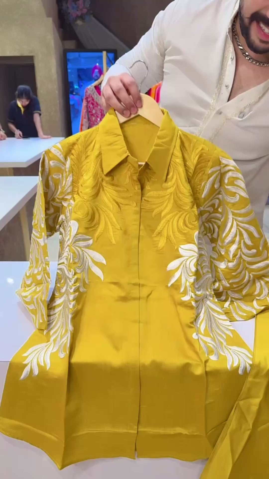 Mustard Yellow Imported Silk Collar Neck Coord set with Beautiful Embroidery Work on It