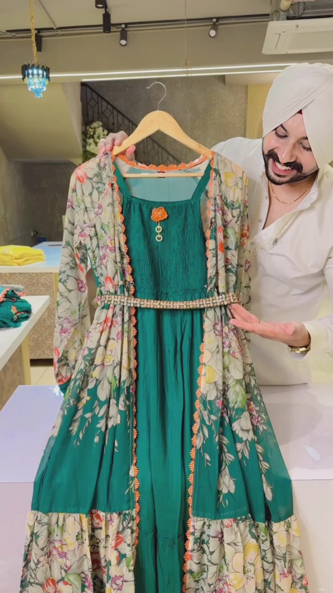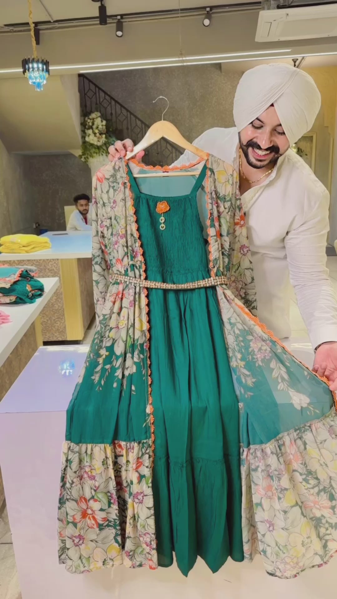 Rayon Green Indo western dress with Georgette shrug & Embroidered Belt