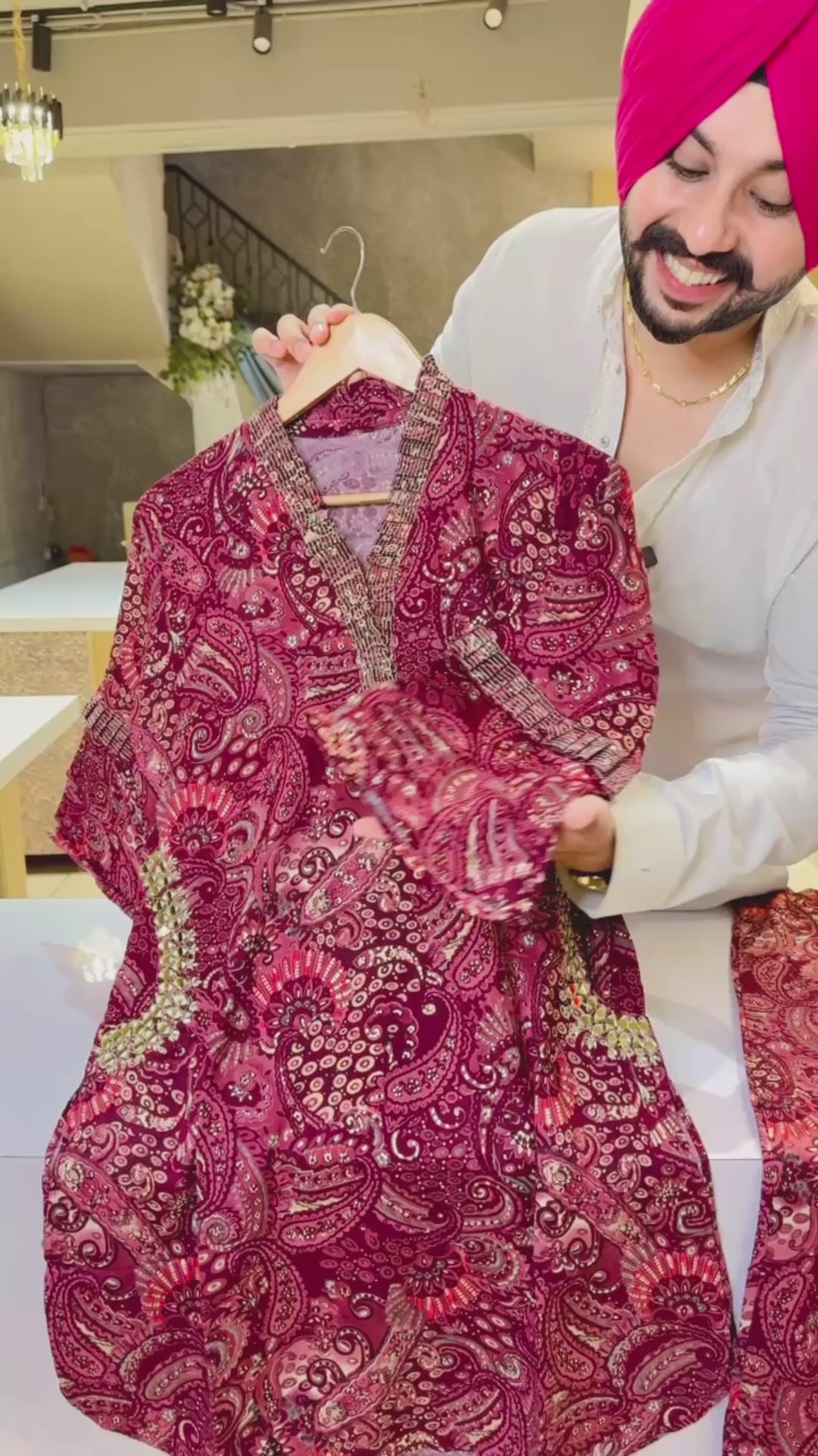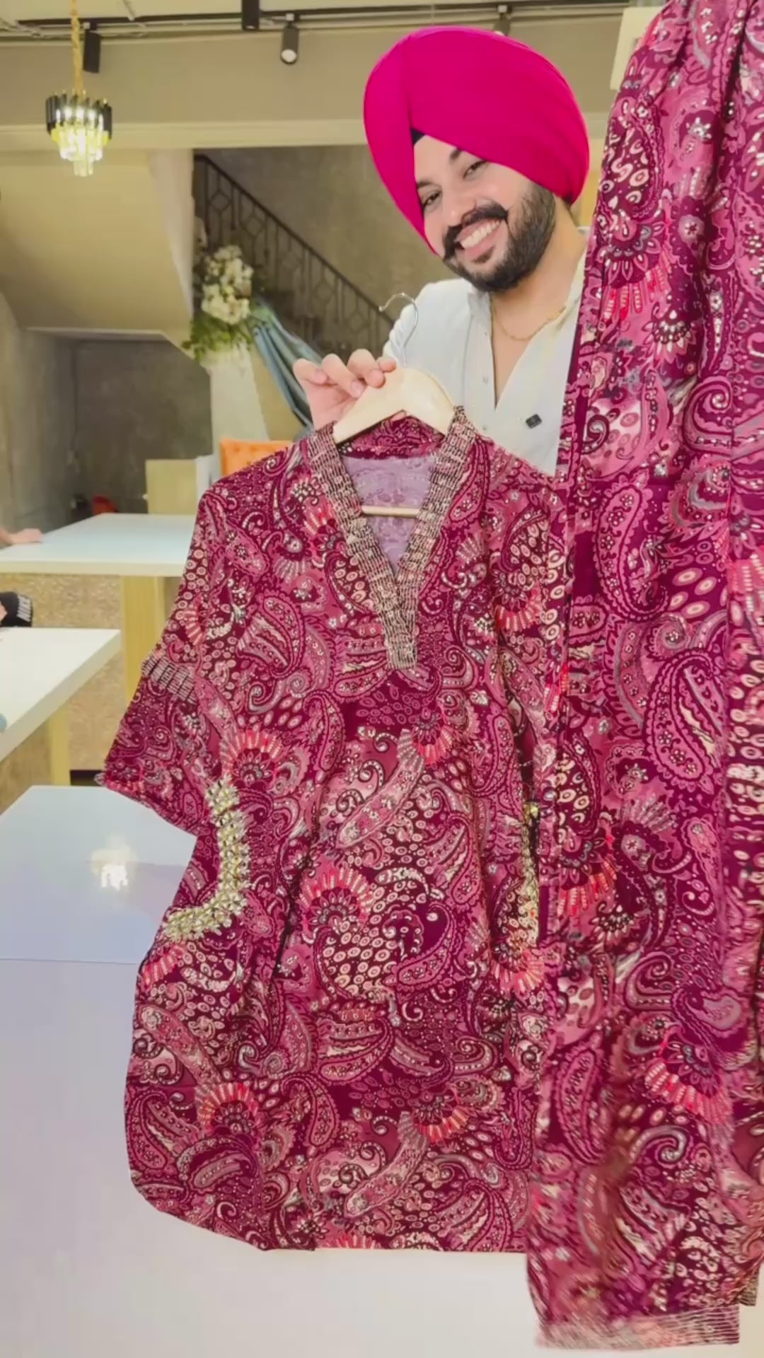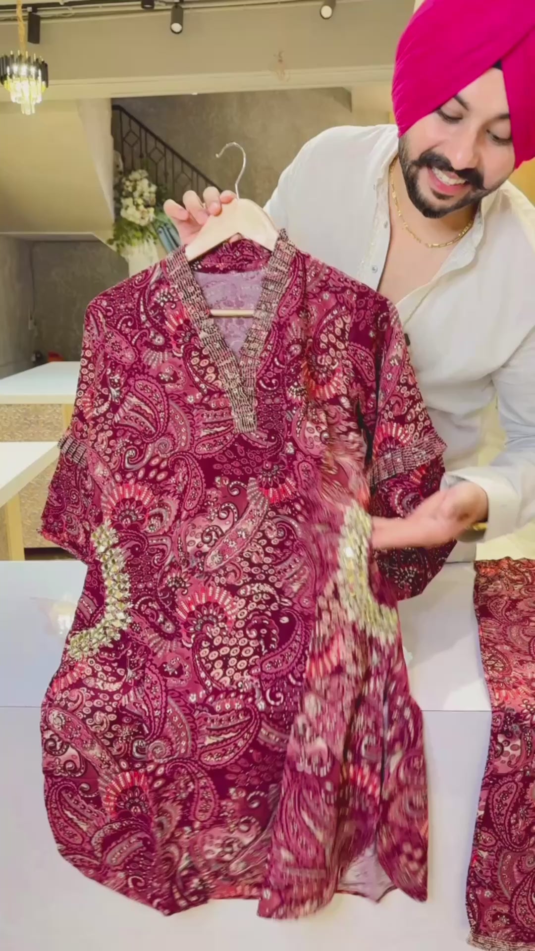 Maroonish Wine Rayon Kalamkari Print Apple Cut Pathani Coordset with Real mirror work on pockets