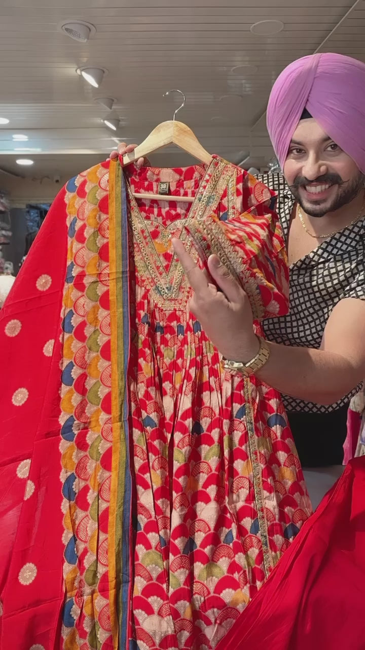 Vibrant Muslin silk Nyra Anarkli suit with Beautiful embroidery Work