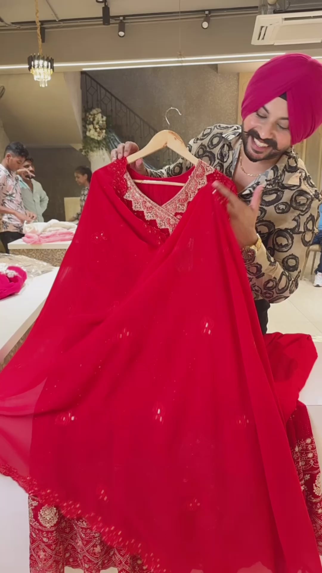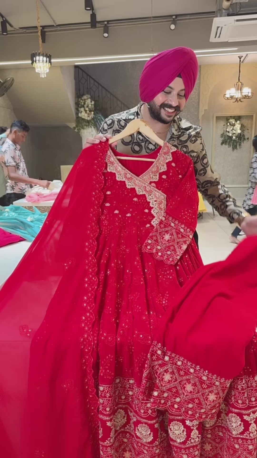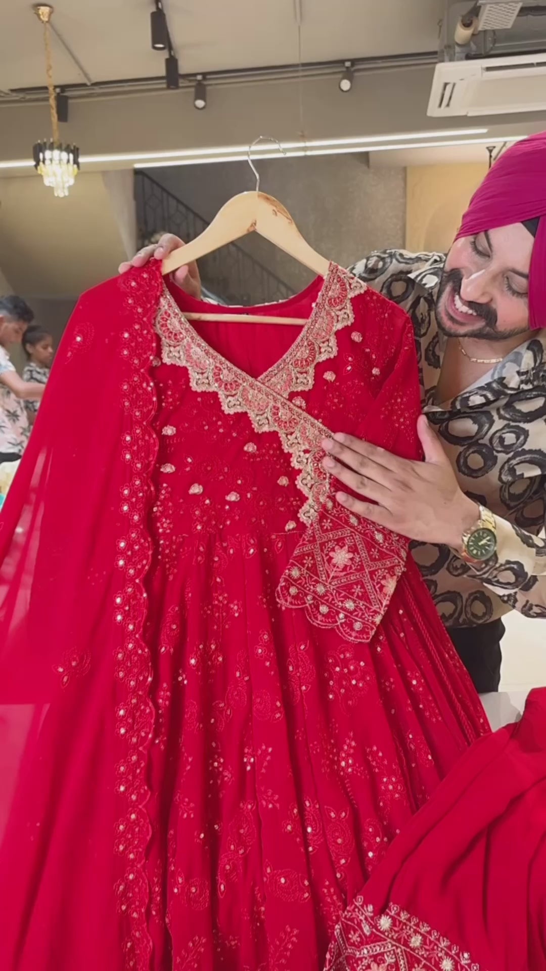 Vibrant Red Georgette Angrakha Fully Embroidered Anarkali Suit with with Heavy Embroiderywork on neck , border & pants