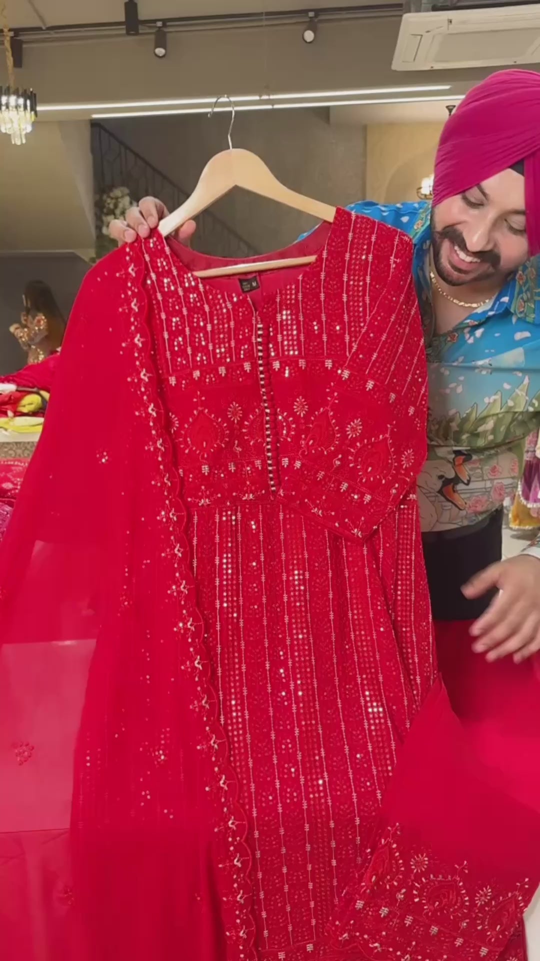 Vibrant Red Georgette Fully embroidered Straight Suit