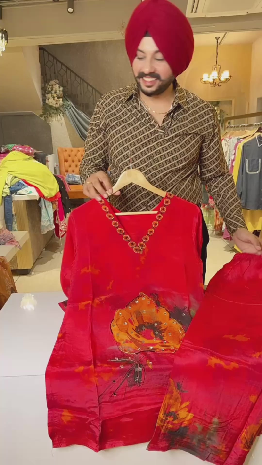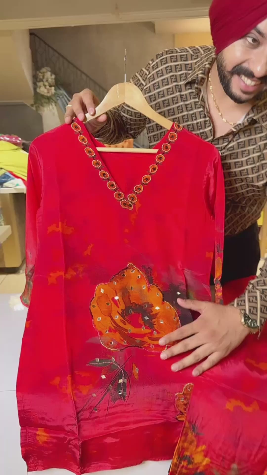 Red Party Wear Crepe Coord set with Hand embroidery work on it