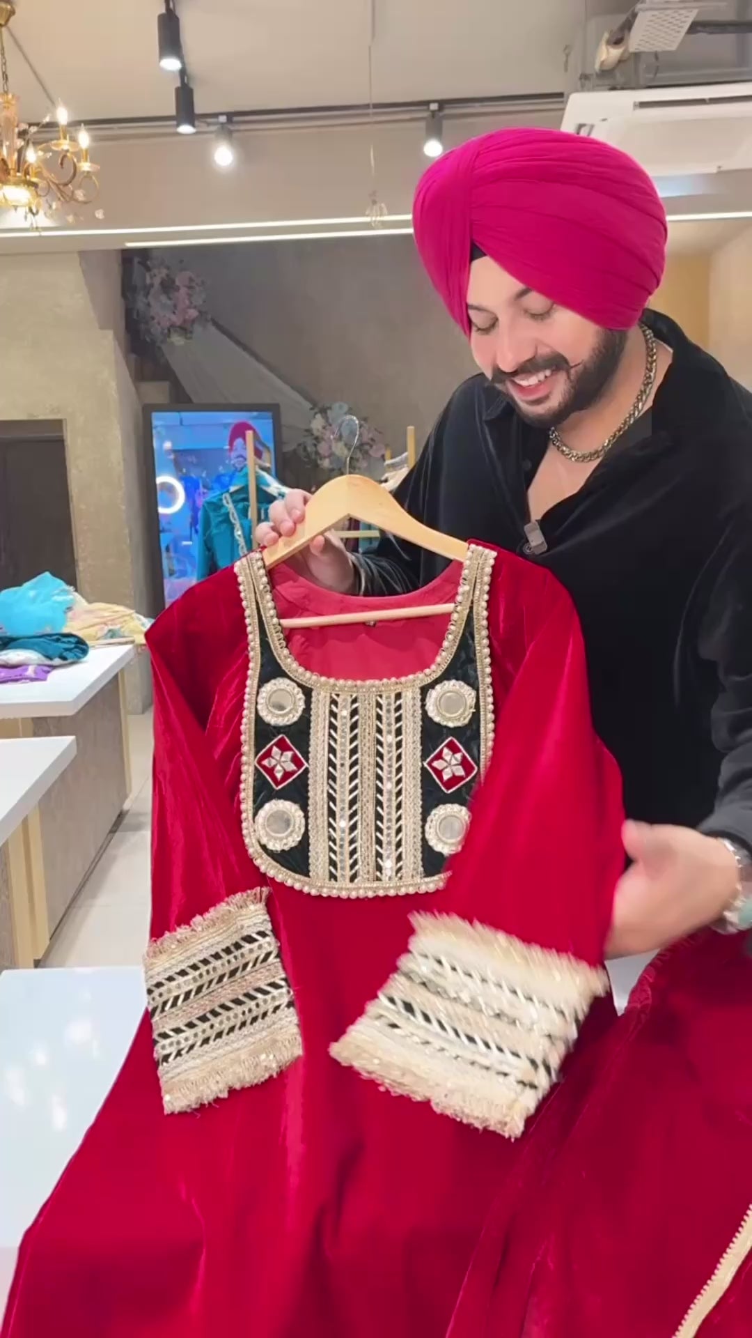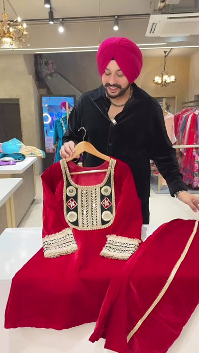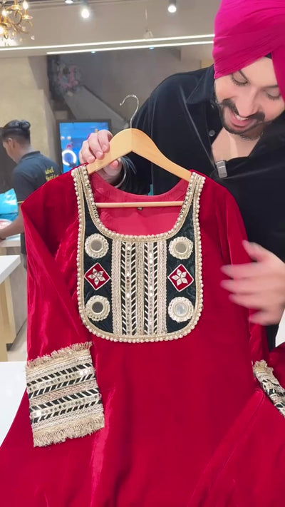 Deep Red Premium Velvet Heavy Gotta & Mirror Work Coord set