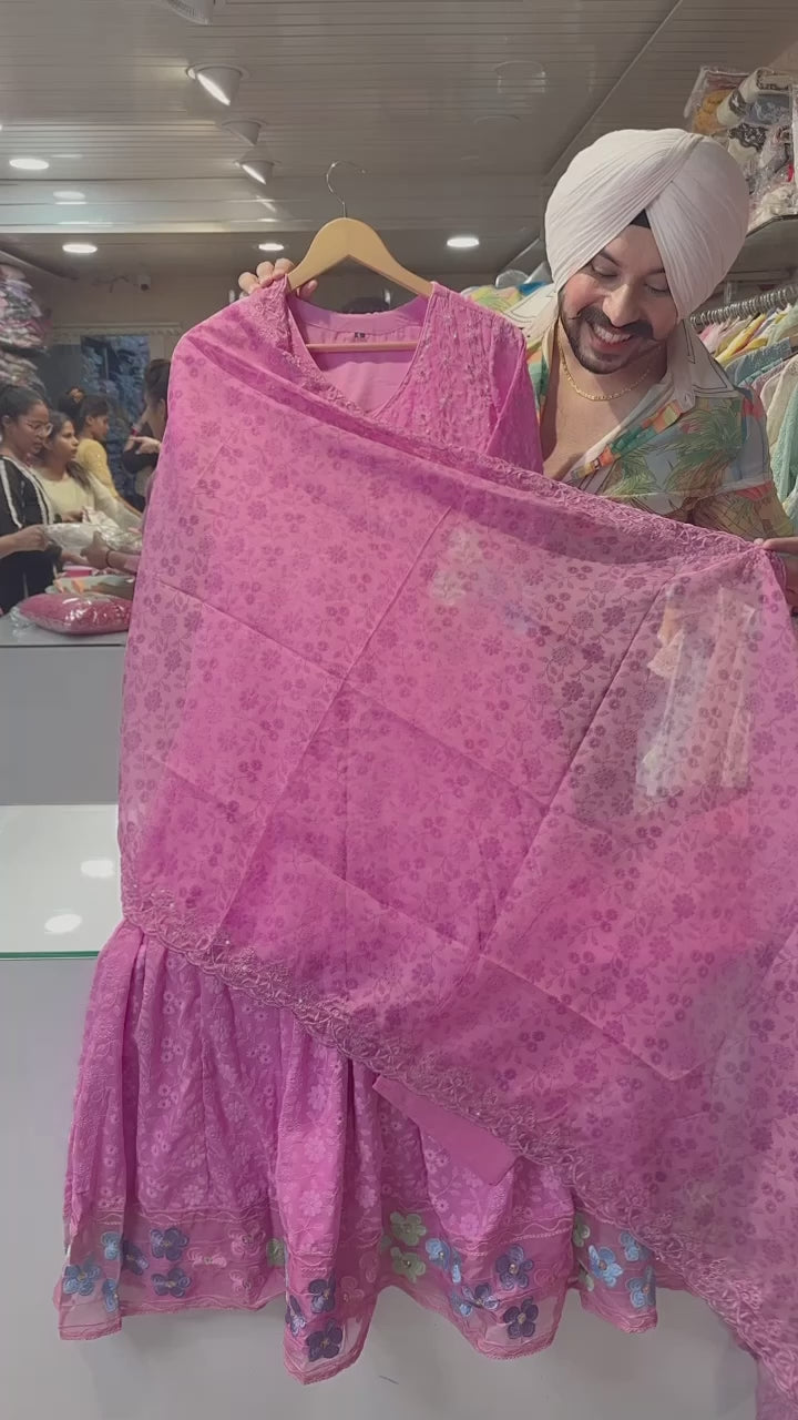 Rose Pink Georgette fully Embroidered Anarkali suit with beautiful Colourful Border