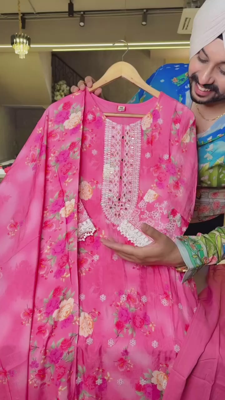 Rose Pink Muslin Silk Embroidered & Cut Work Straight Suit
