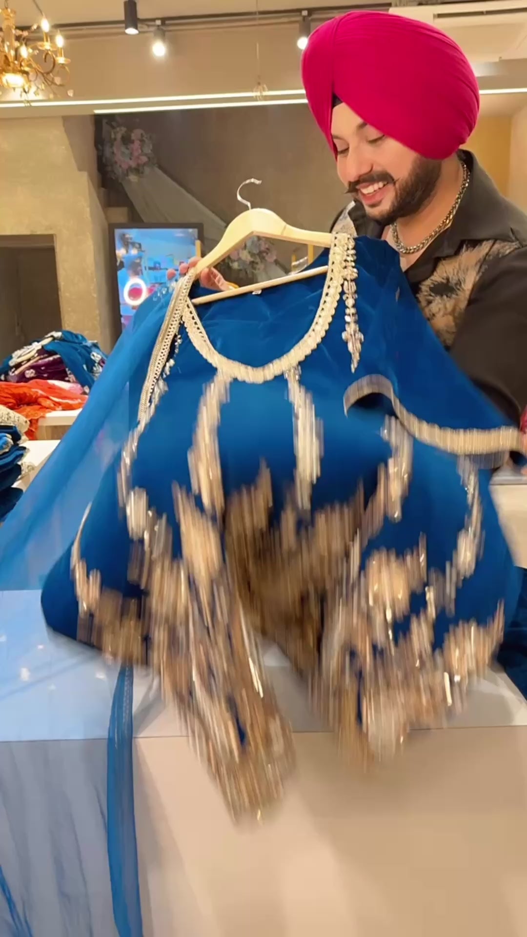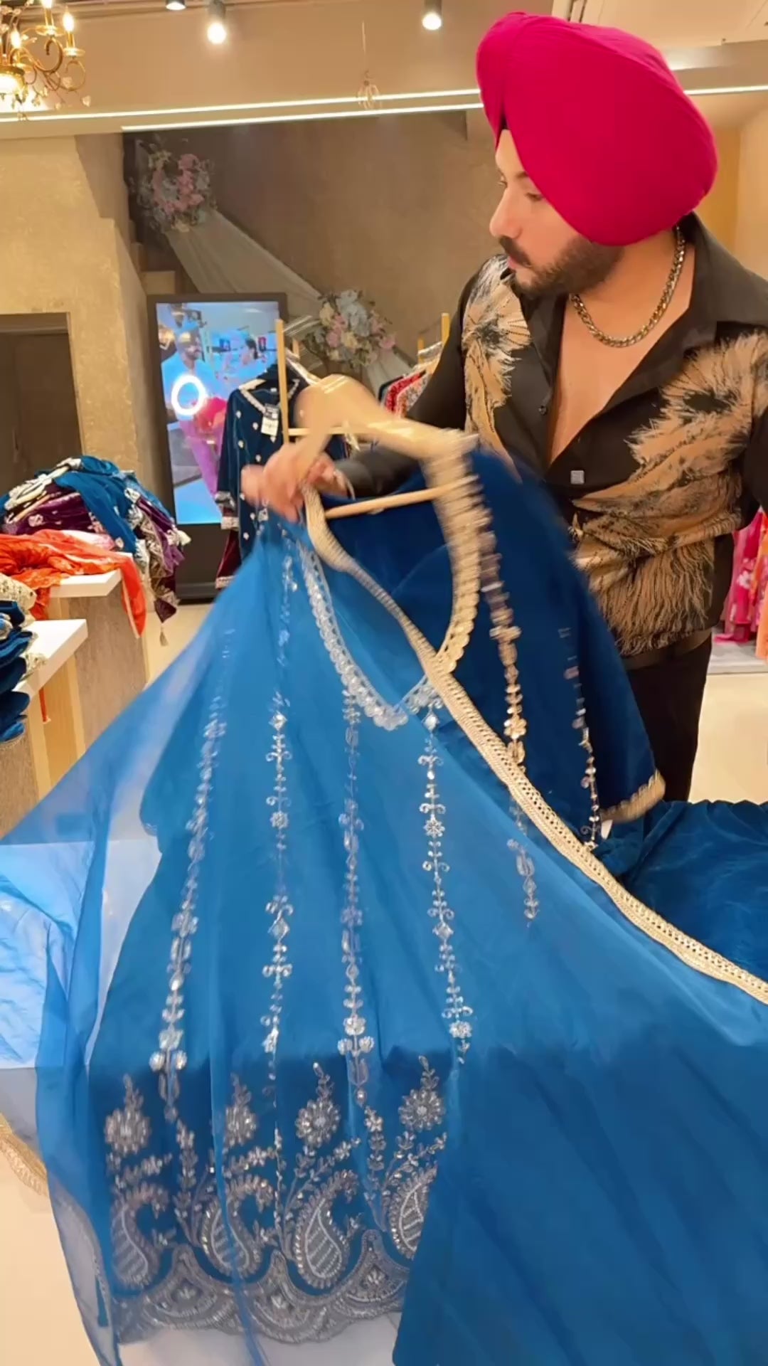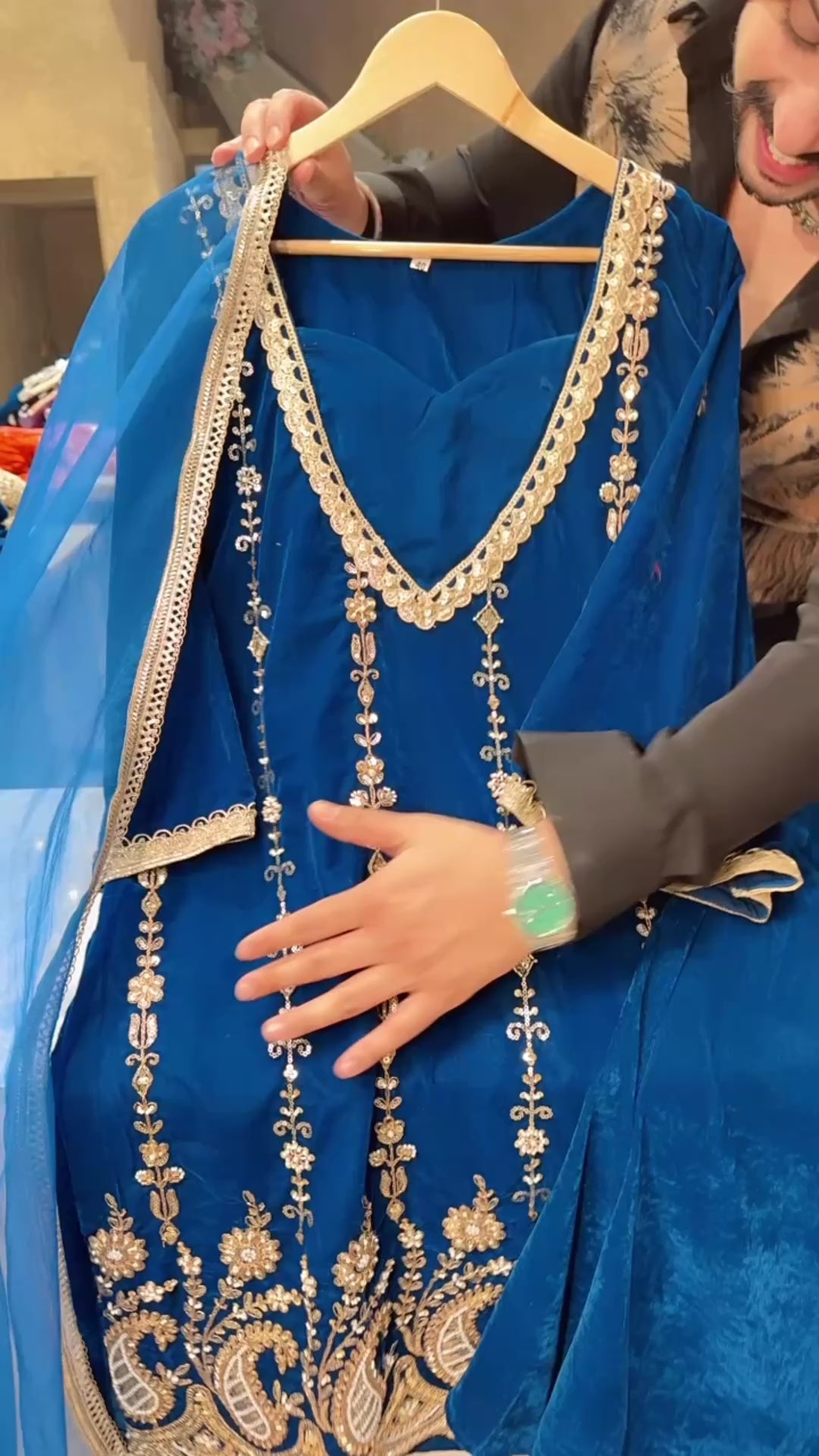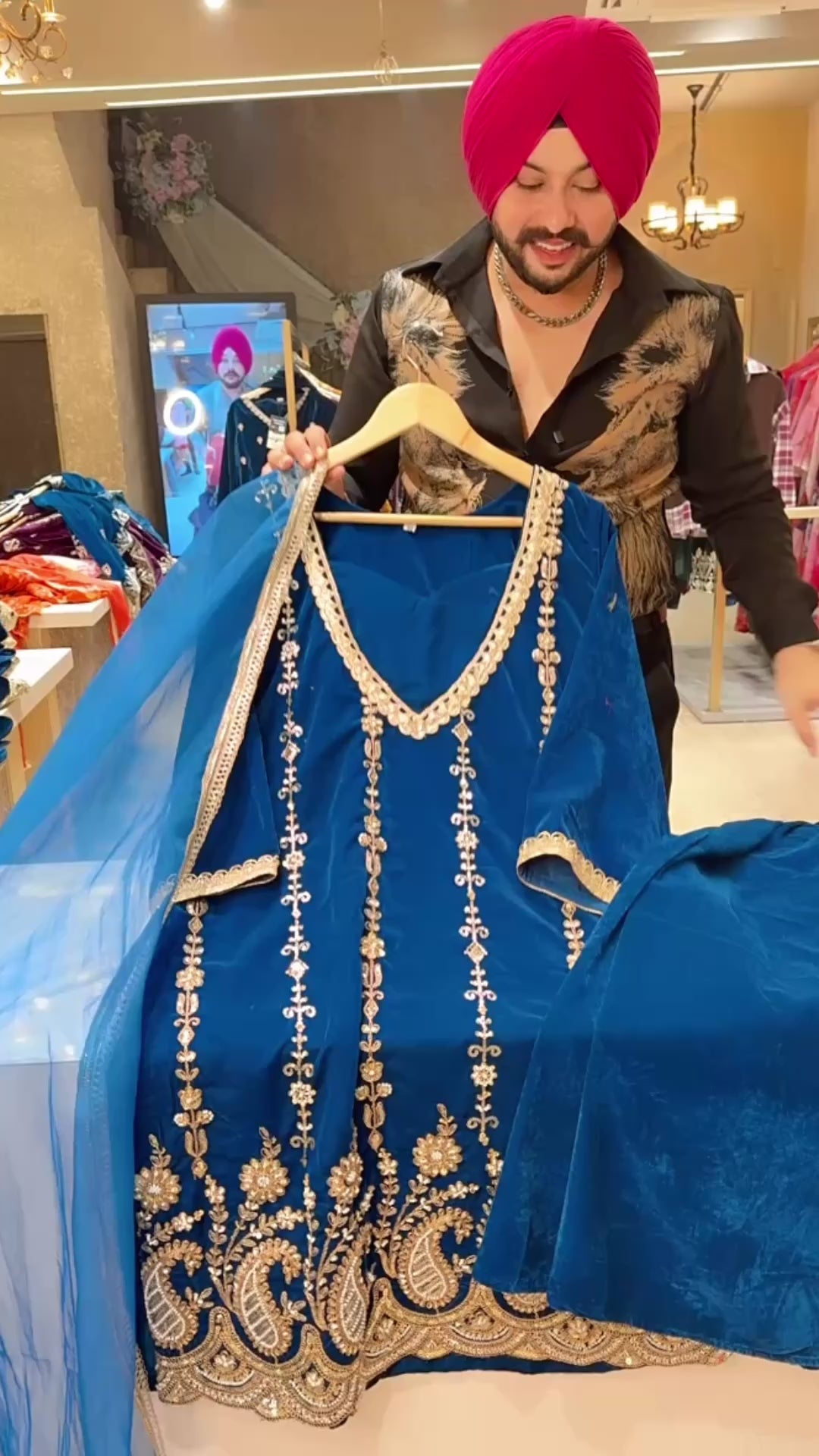 Royal Blue Velvet Heavy hand Embroidered Indowestern Plazo suit with Beautiful Organza Duppata