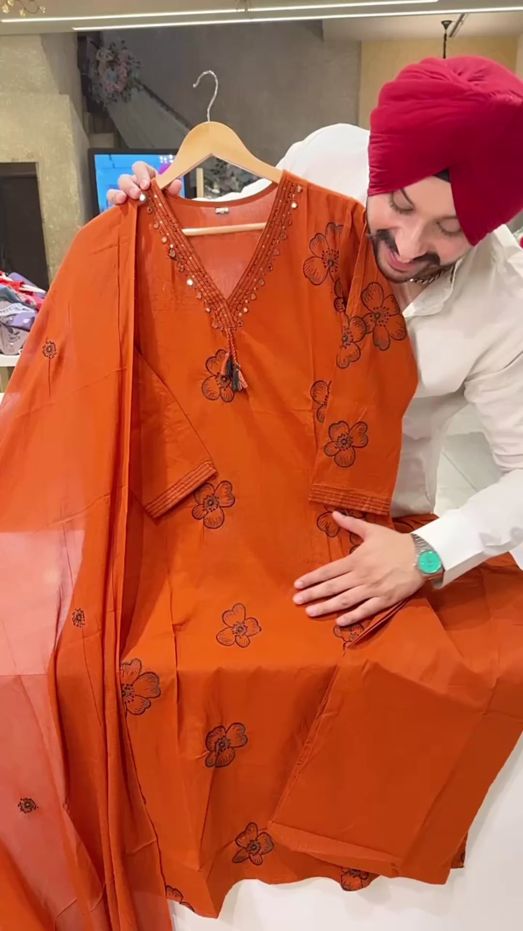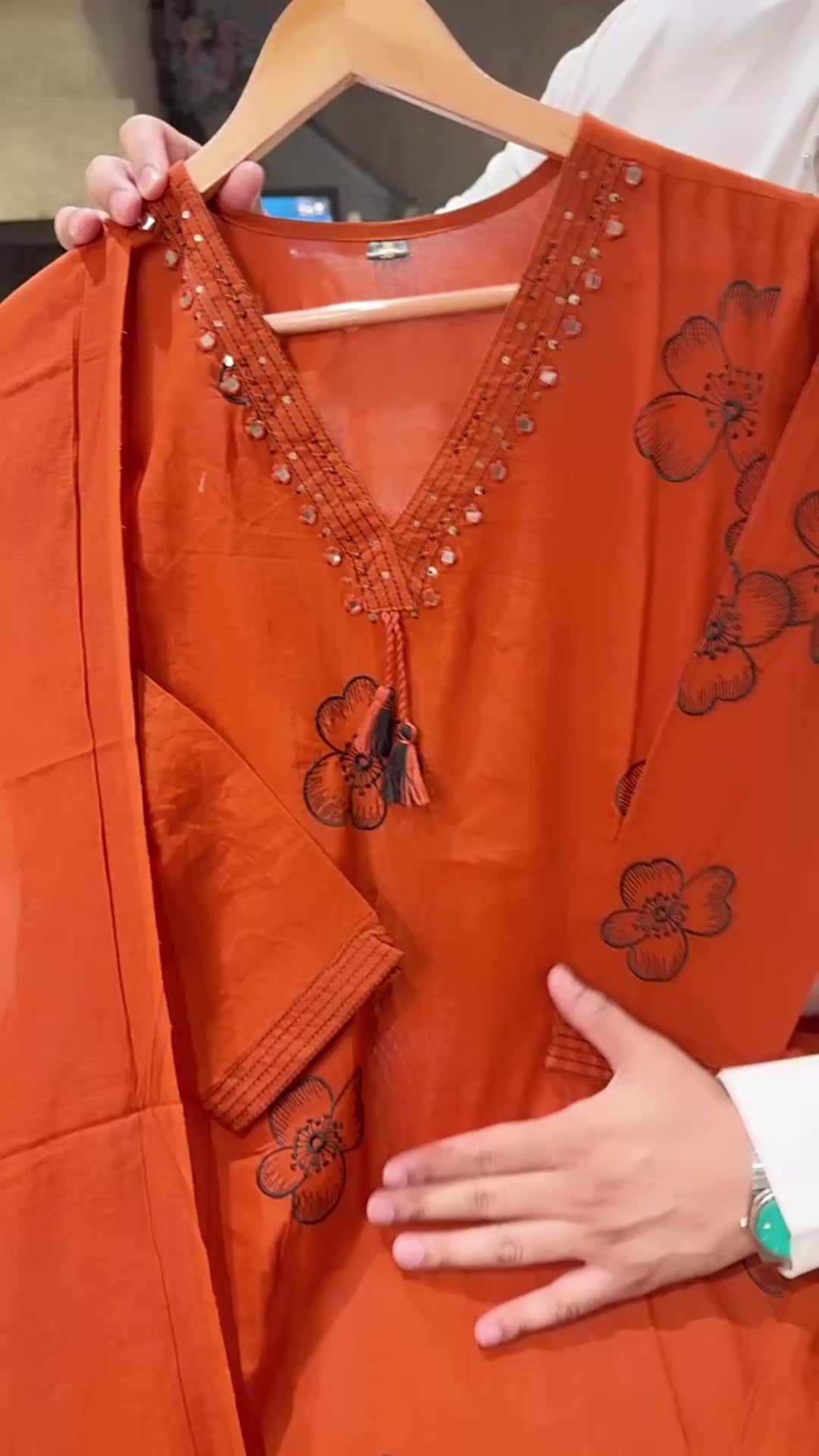 Rust Colour pure Cotton Fully Floral Embroidered Semiformal Straight Suit with Mal Cotton Duppata