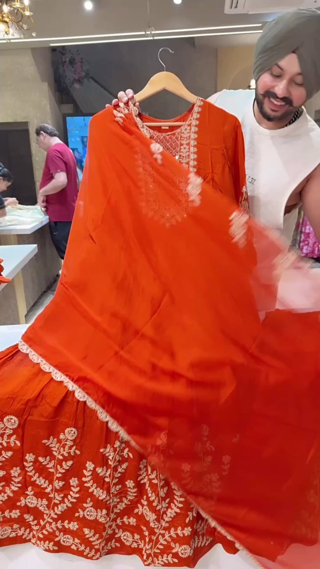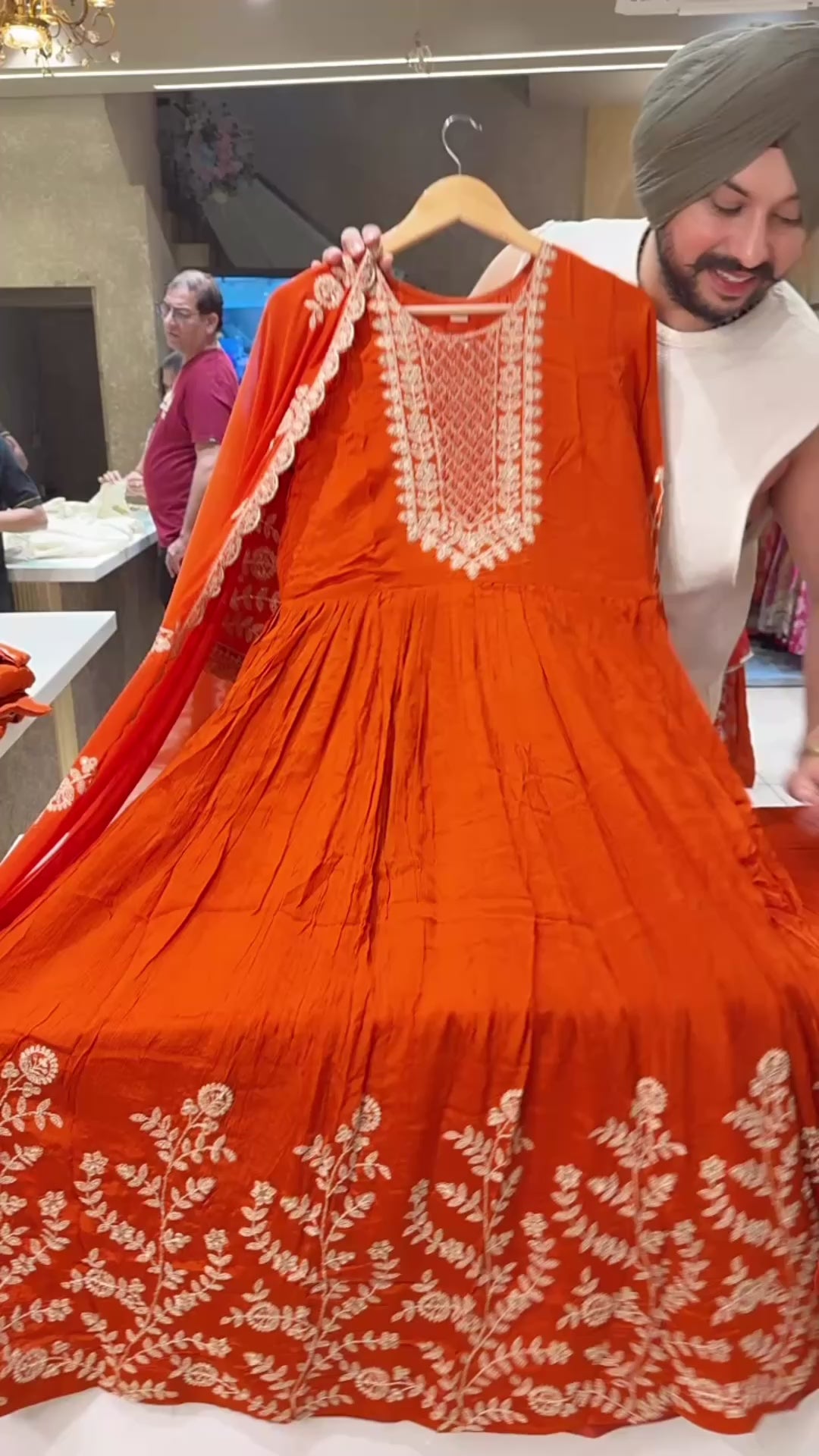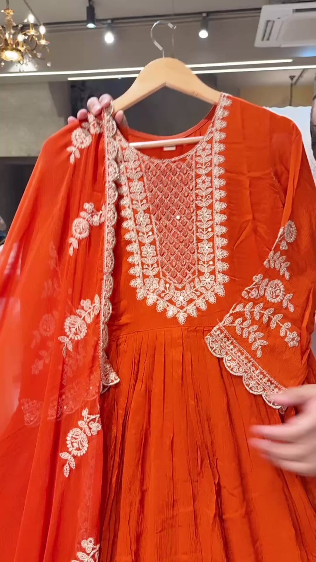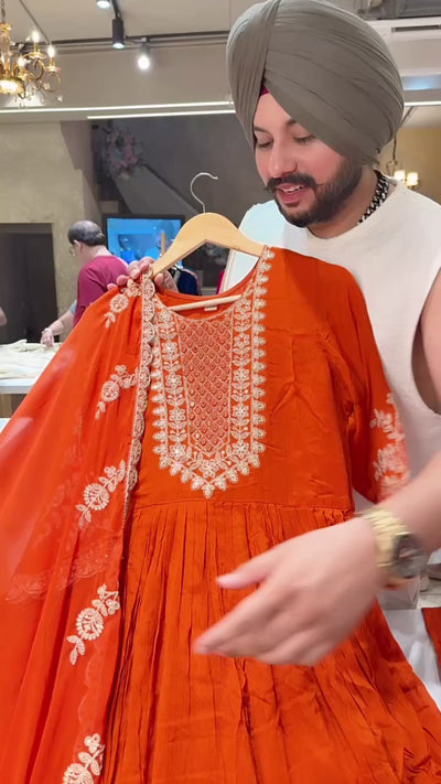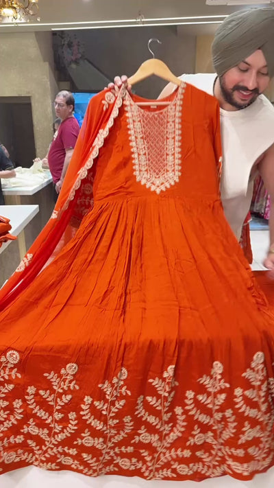 Rusty Orange Chinon Embroidered Full flair Party Wear Anarkali suit with Beautiful Duppata