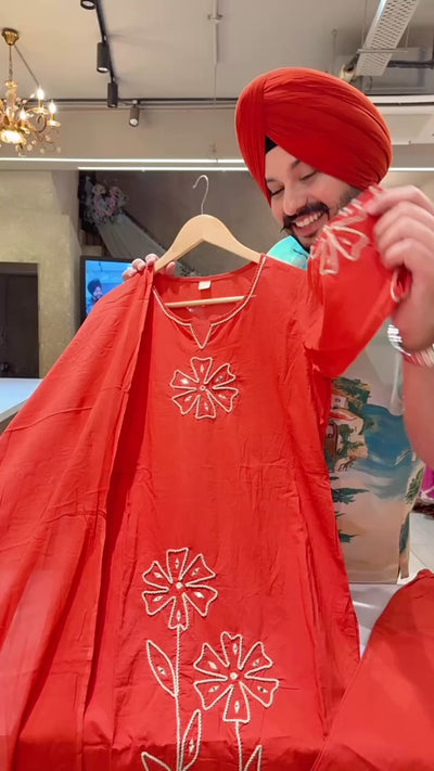 Rusty Orange Pure Cotton Floral Embroidered Semi Formal Suit with Beautiful Duppata