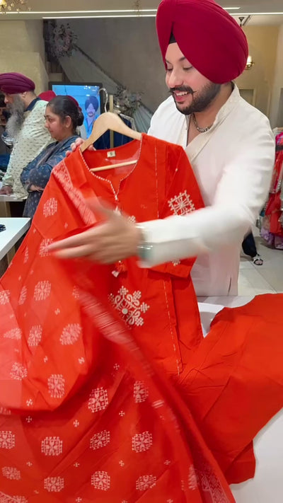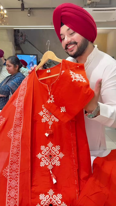 Rusty Orange Pure Cotton Semi Formal Straight Suit with Beautiful Embroidery Work it