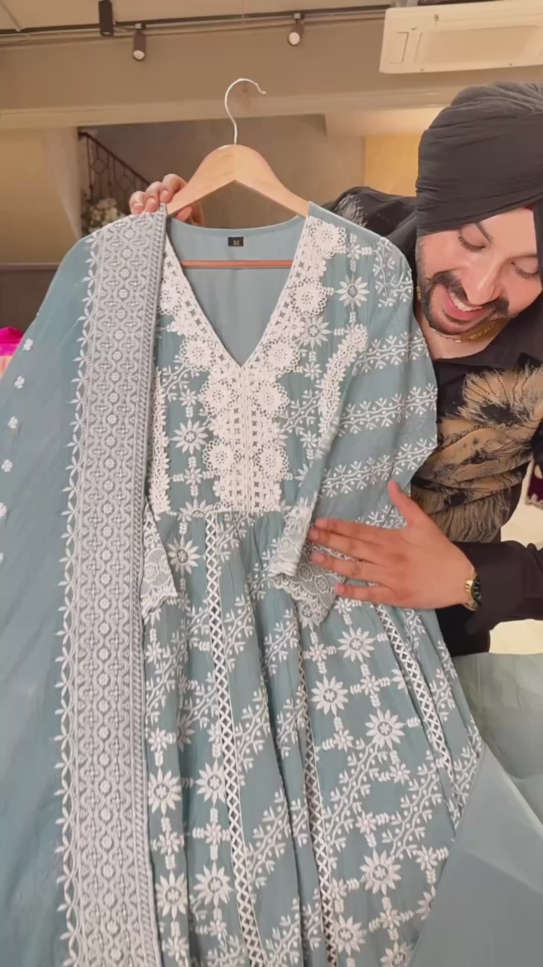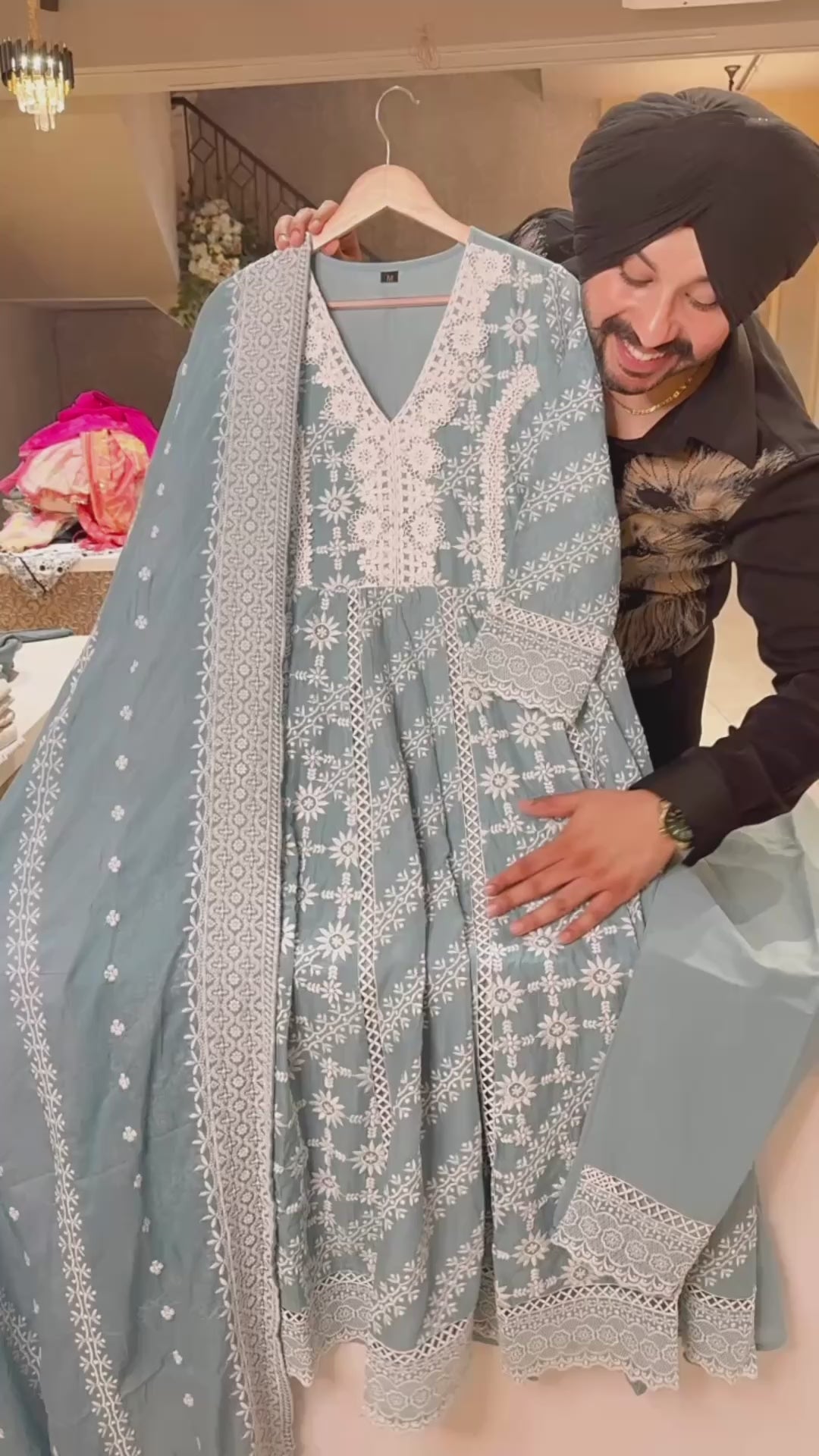 Sea Blue Pure Mal Cotton Fully embroidered Anarkali Suit with Beautiful embroidered Mal Cotton Duppata