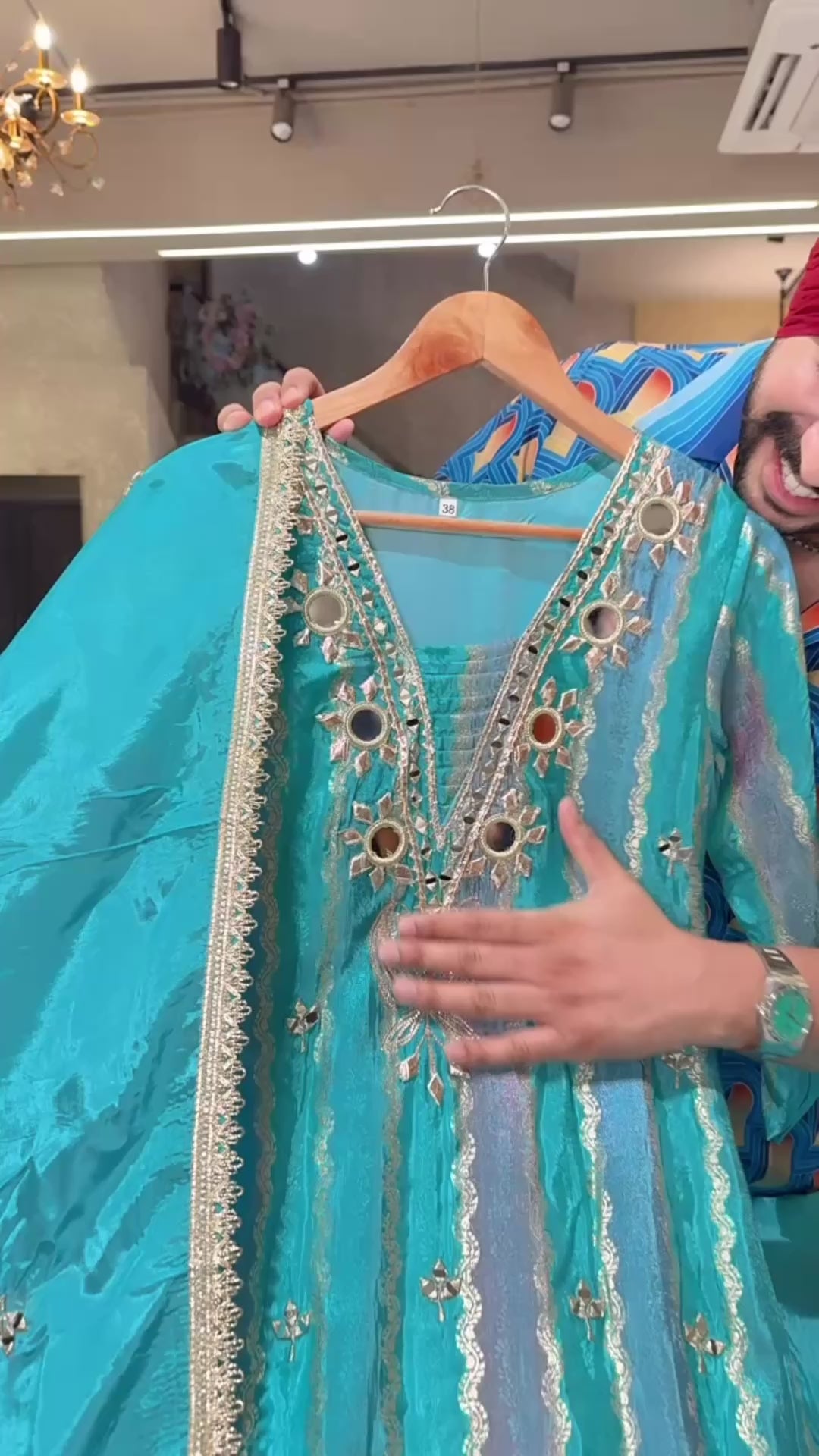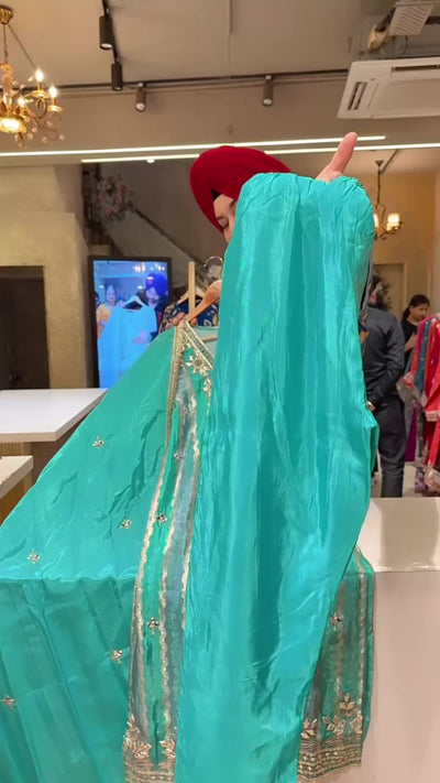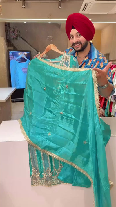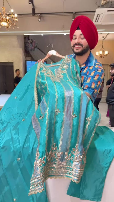 Sea Green Banarsi Silk Heavy Gotta & Mirror work party Wear Straight Suit