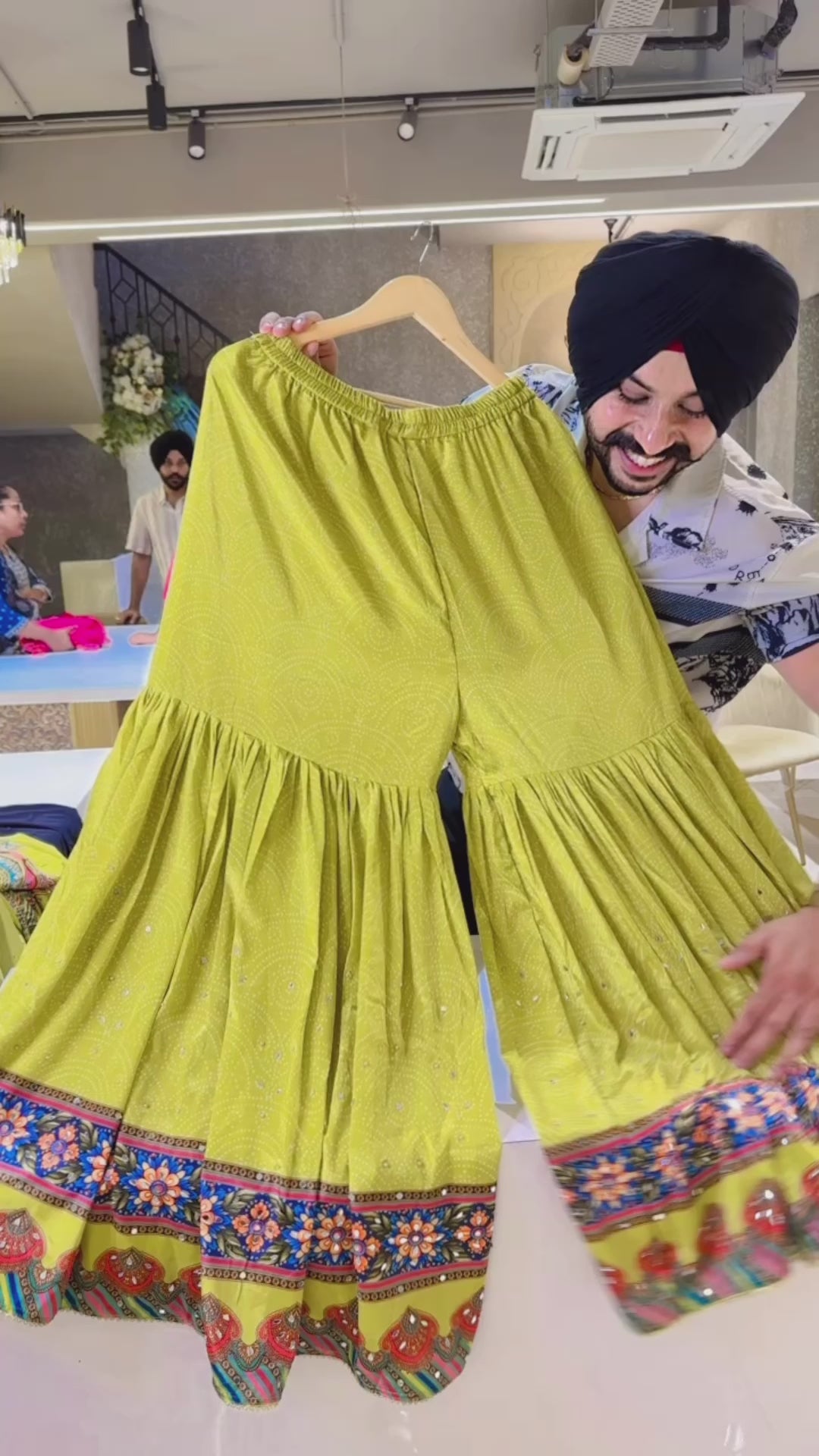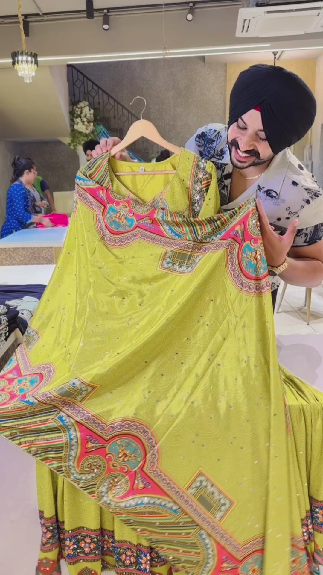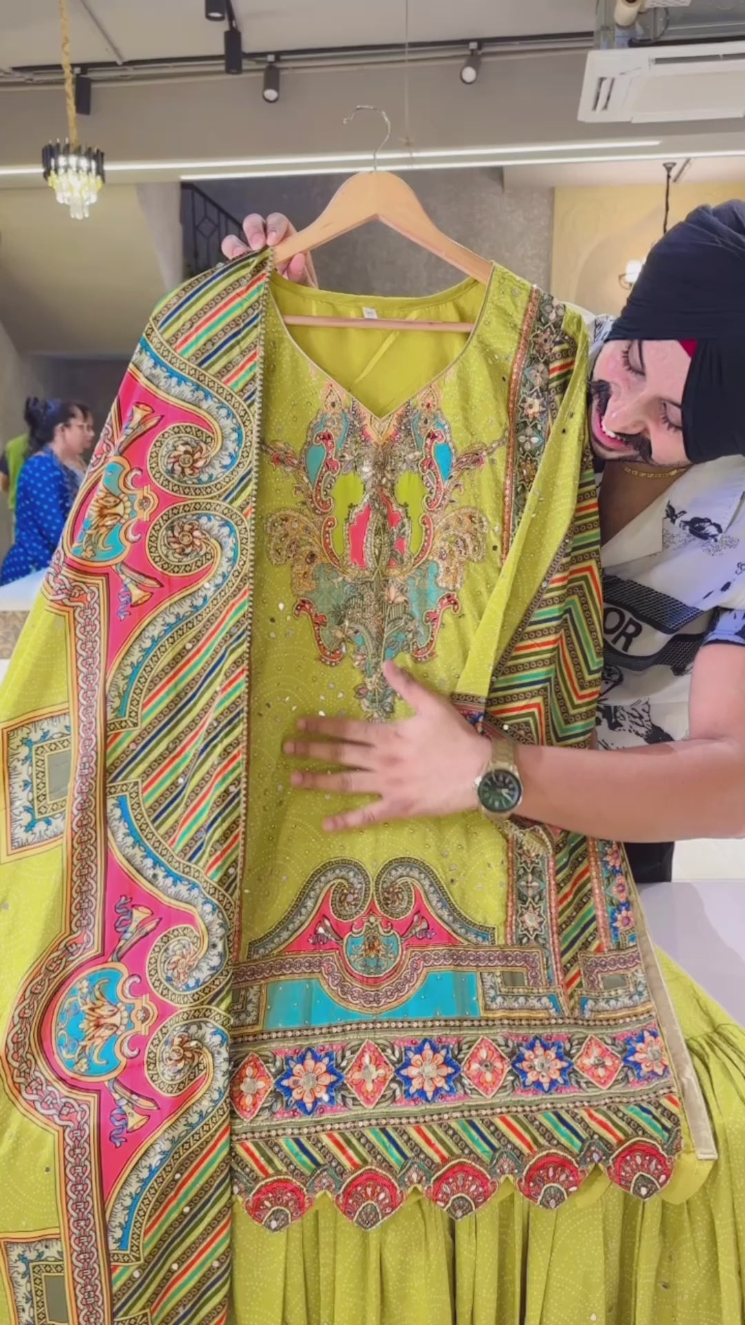 Vibrant Green crepe Heavy embroidered Full flair Garara suit with Beautiful Duppata