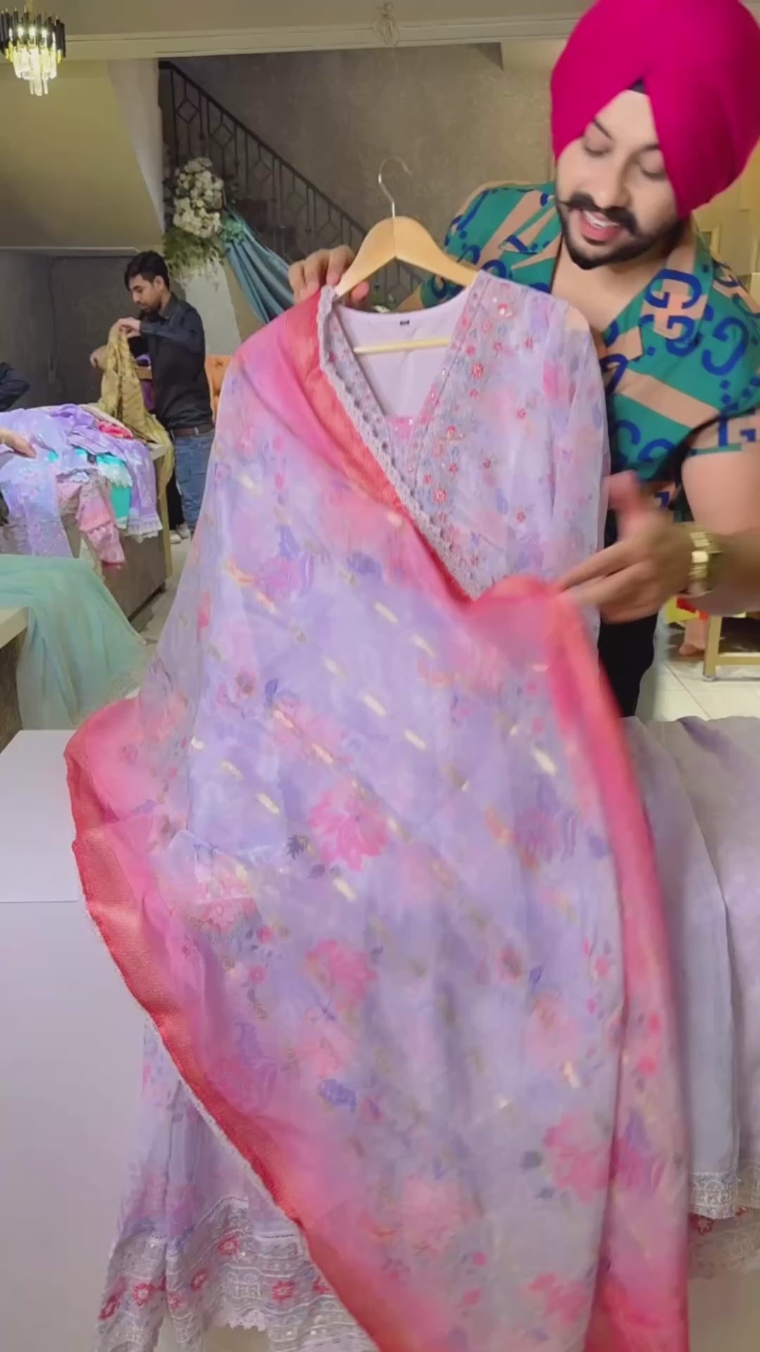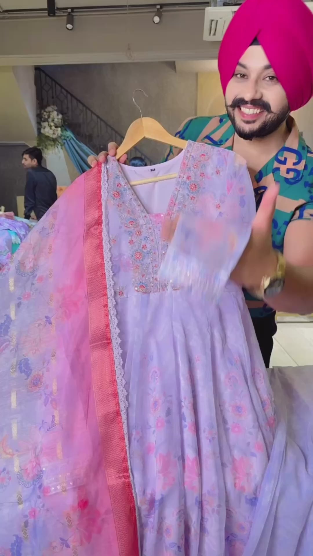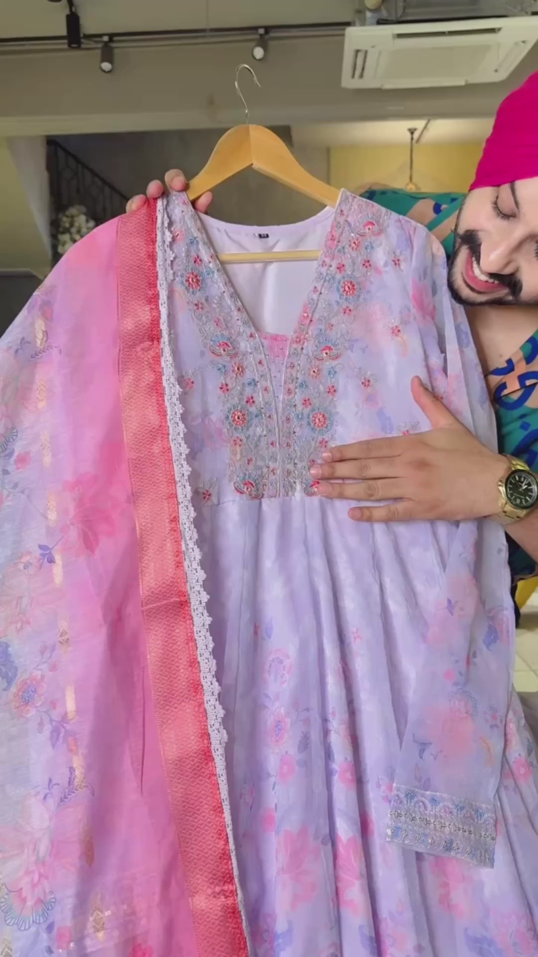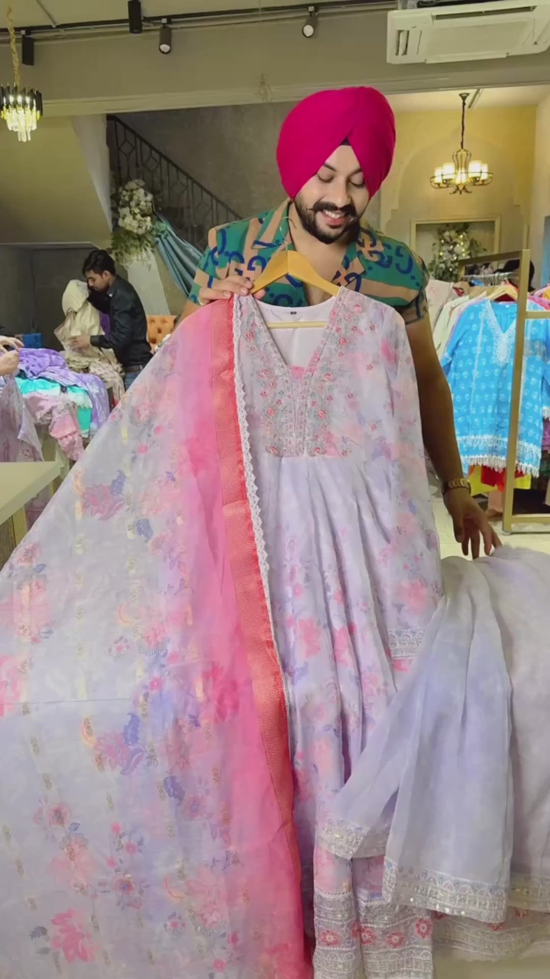 Light Lavender Shimmer Organza Sharara Anarkali suit with Beautiful Embroidery work on neck