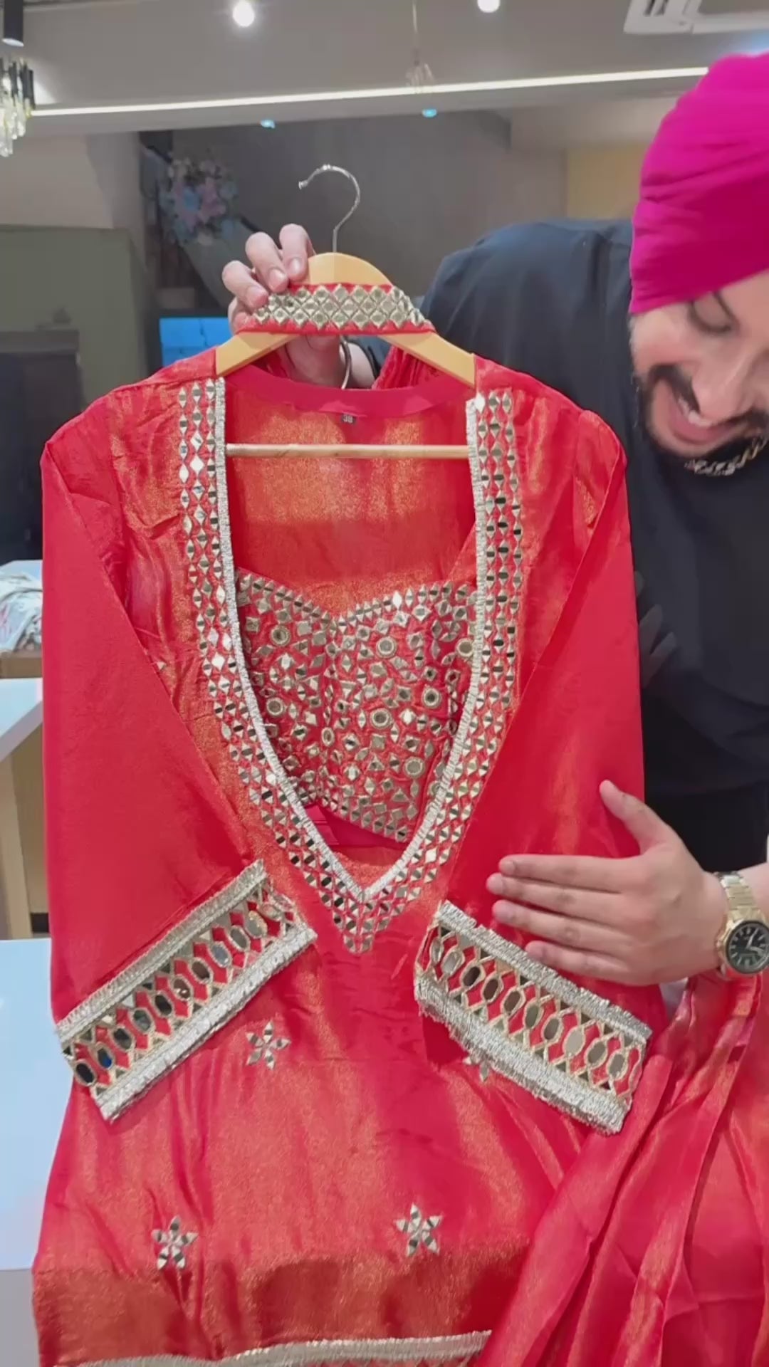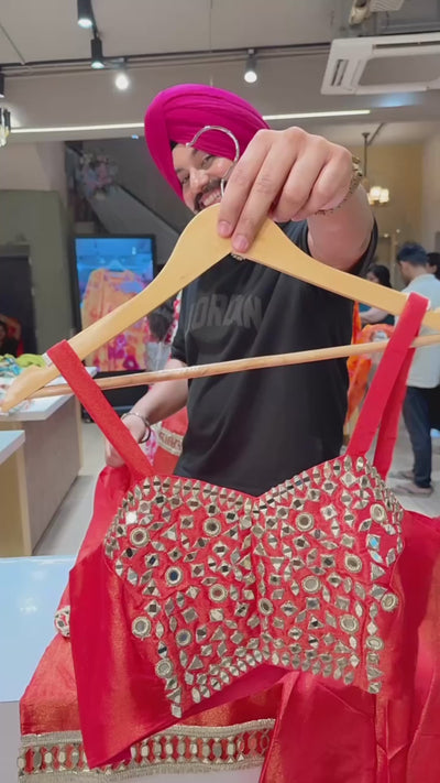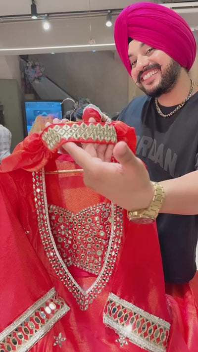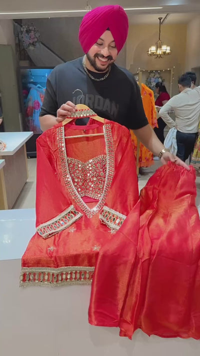 Gajri Shimmer Silk Tissue Designer Bell Bottom Sharara Coordset with Heavy mirror work on it & Bustier
