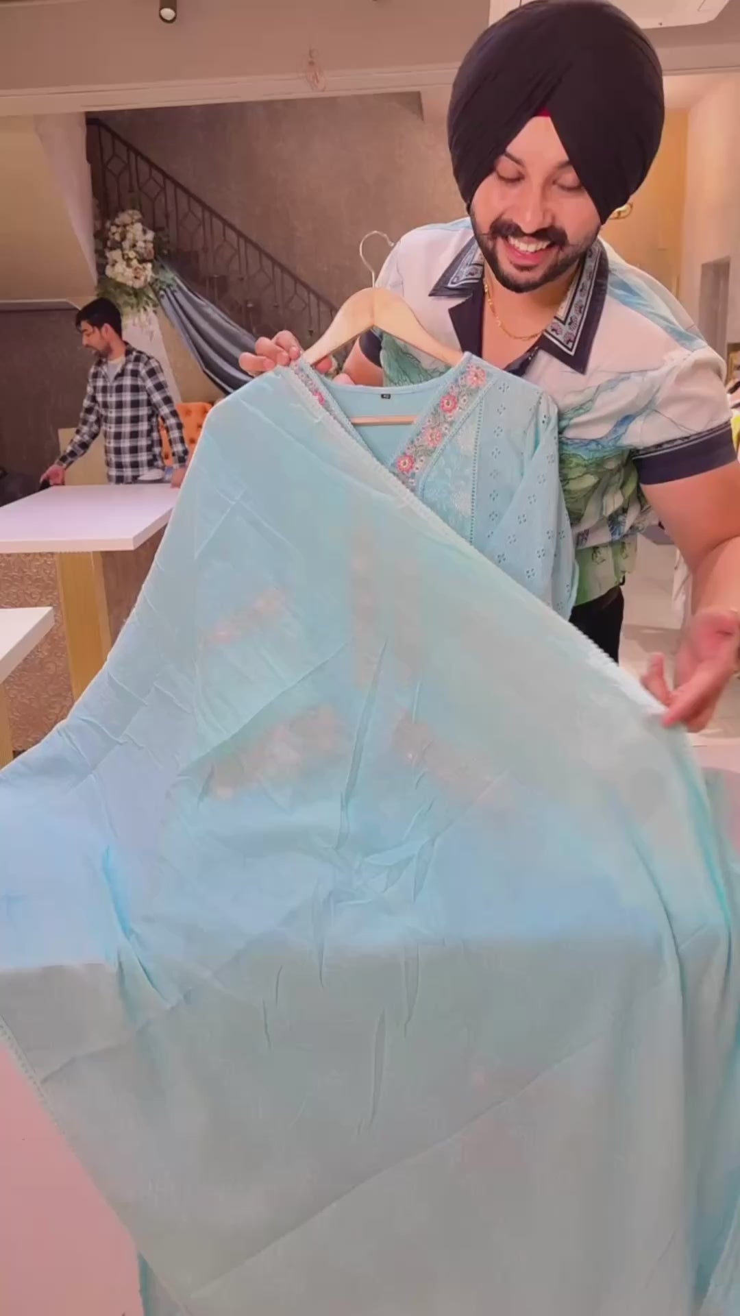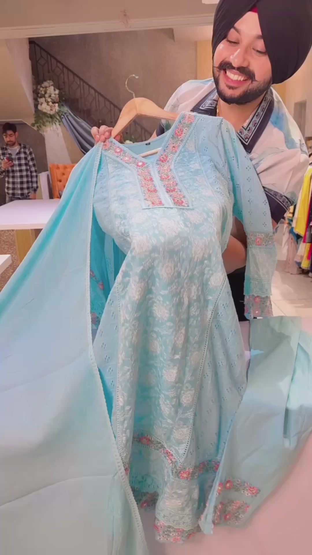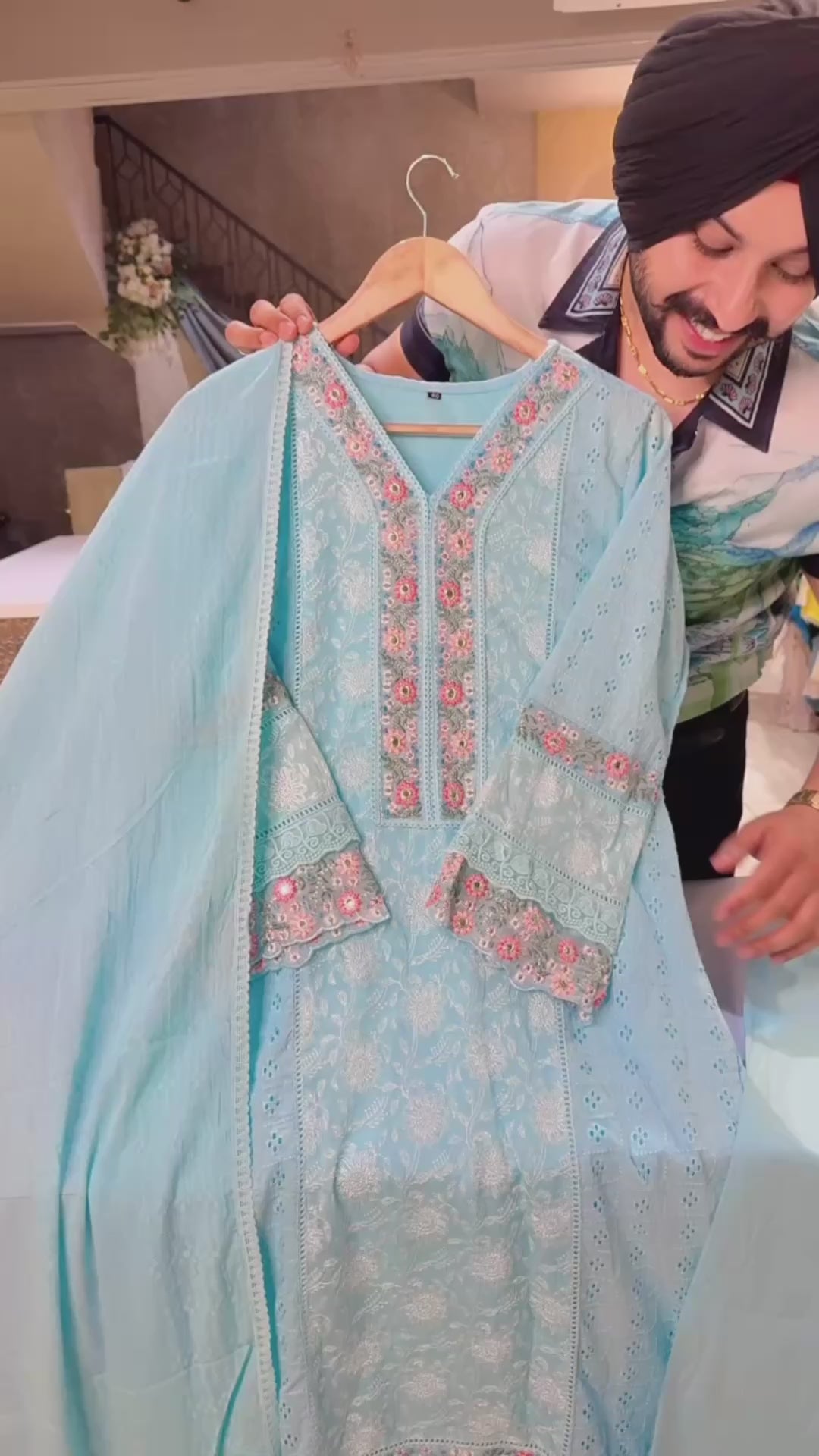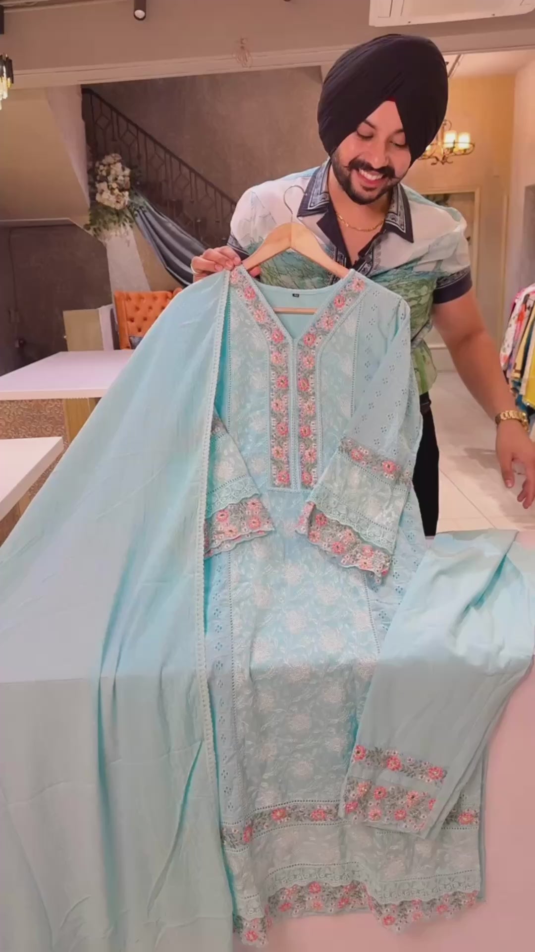 Sky Blue Pure Cotton Embroidered & Shifli Work Pakistani suits