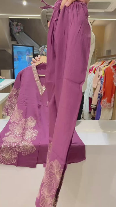 Faalsa Soft Imported Wilk Heavy Sequins Work Designer Coorr set with Beautiful Pants