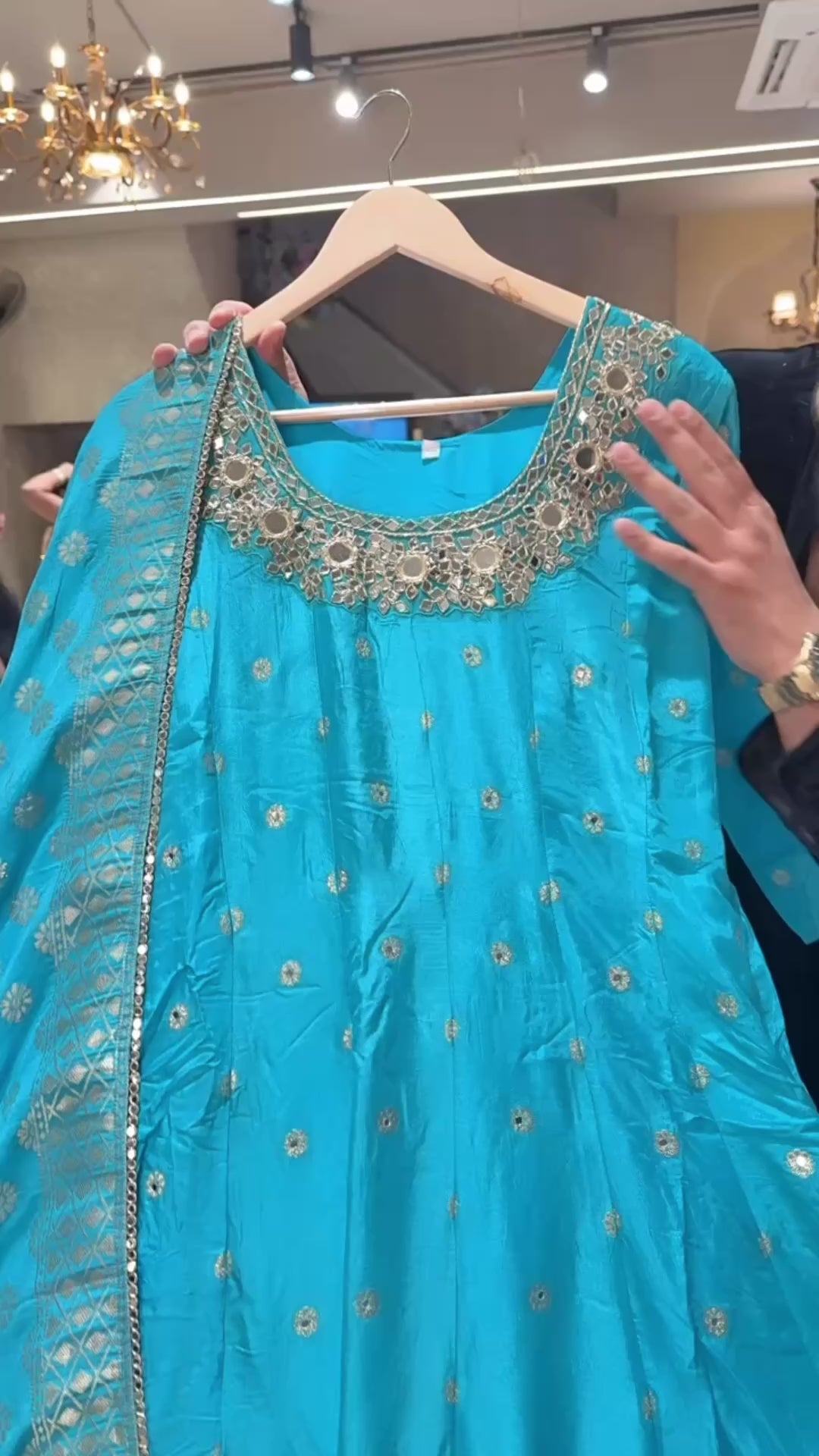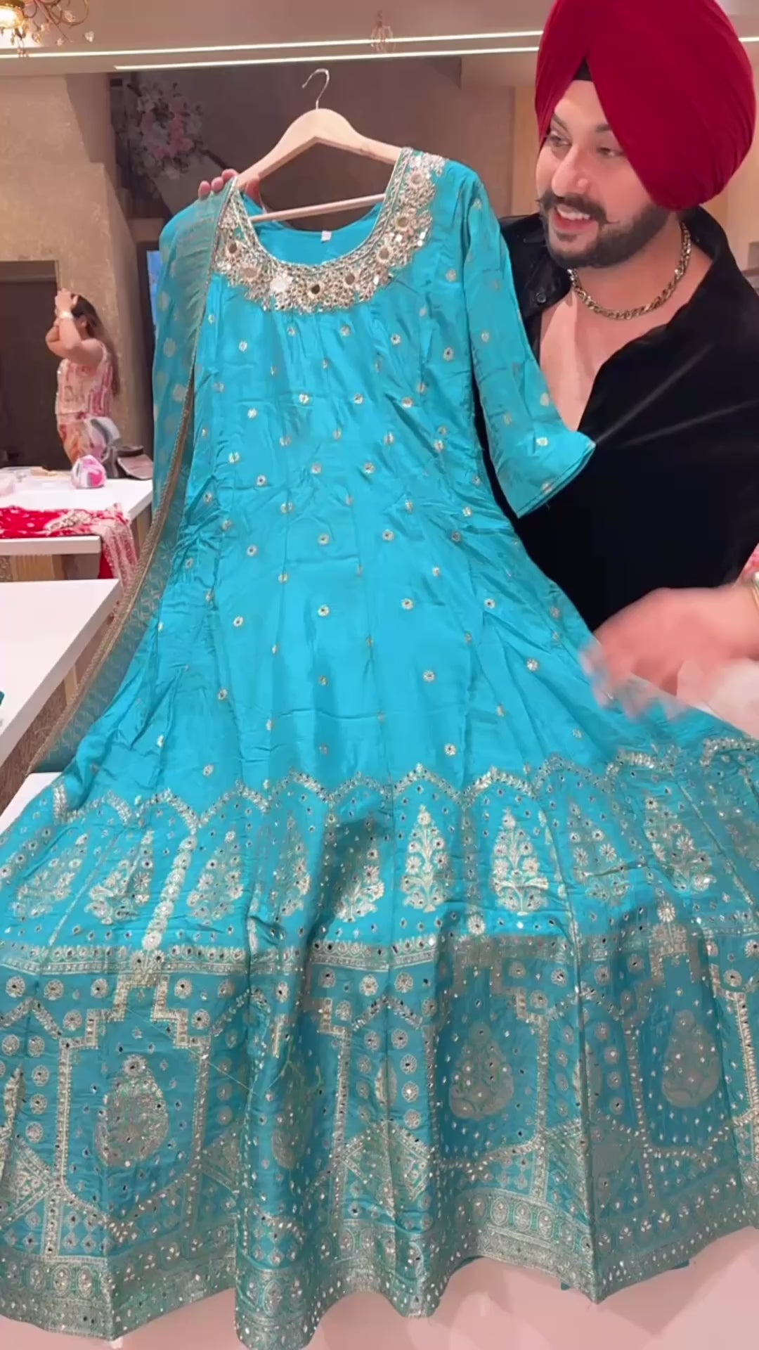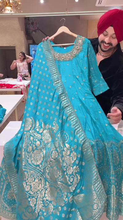 Soft Silk Full Flair Hand Embroidered & Mirror Pasting Anarkali Gown With Heavy Banarasi Border & Duppata