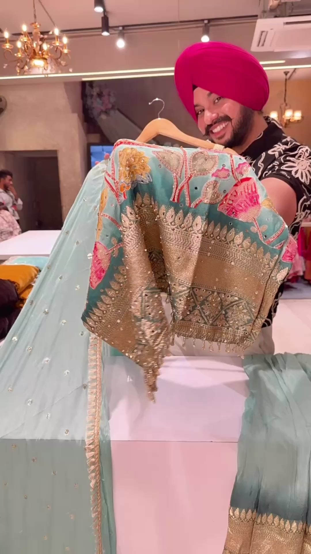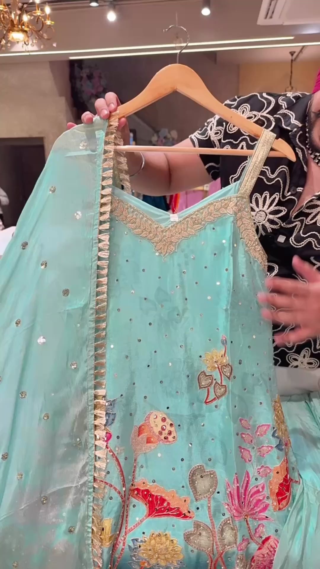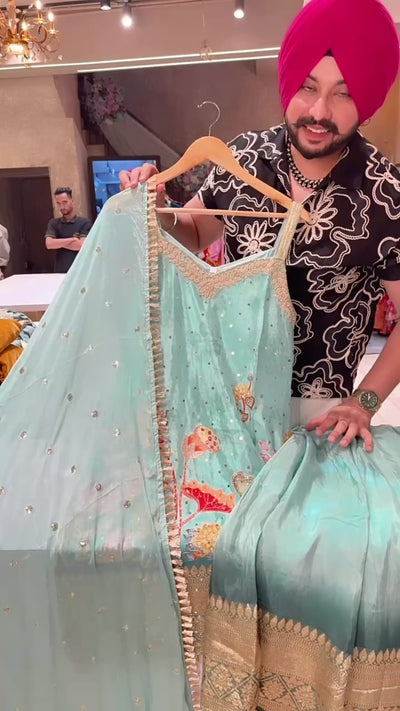 Sea Blue Soft Silk Heavy Hand embroidered & Sequins Work Strap Sleeves Sharara suit with Heavy Chinon Duppata
